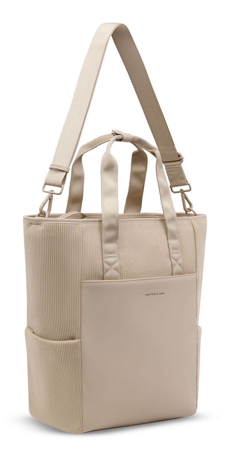 The Kapten & Son Lindby Pro Cord Convertible Backpack stands for clean lines, uncompromising functionality and an urban look that adapts to any style. Elegant, robust and absolutely well thought-out – this backpack is made for people who place the highest demands on design, organisation and comfort in everyday life as well as at work or university. Whether on foot or on a bike - the Lindby Pro Cord Convertible Backpack is your ingenious all-rounder for every day. As well as bag worn on the two handles or on the shoulder strap , this item can be presented magnificently!