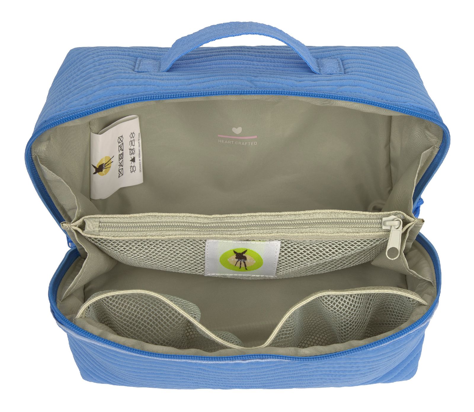 You probably know it! Where do you put the essentials and hygiene products? The Lässig brand had a brilliant idea so that you don't have to fit everything in your large bag . The bag is smaller than many others and yet all must-have's fit perfectly into it. Thanks to many compartments, everything is stored in a sorted manner.