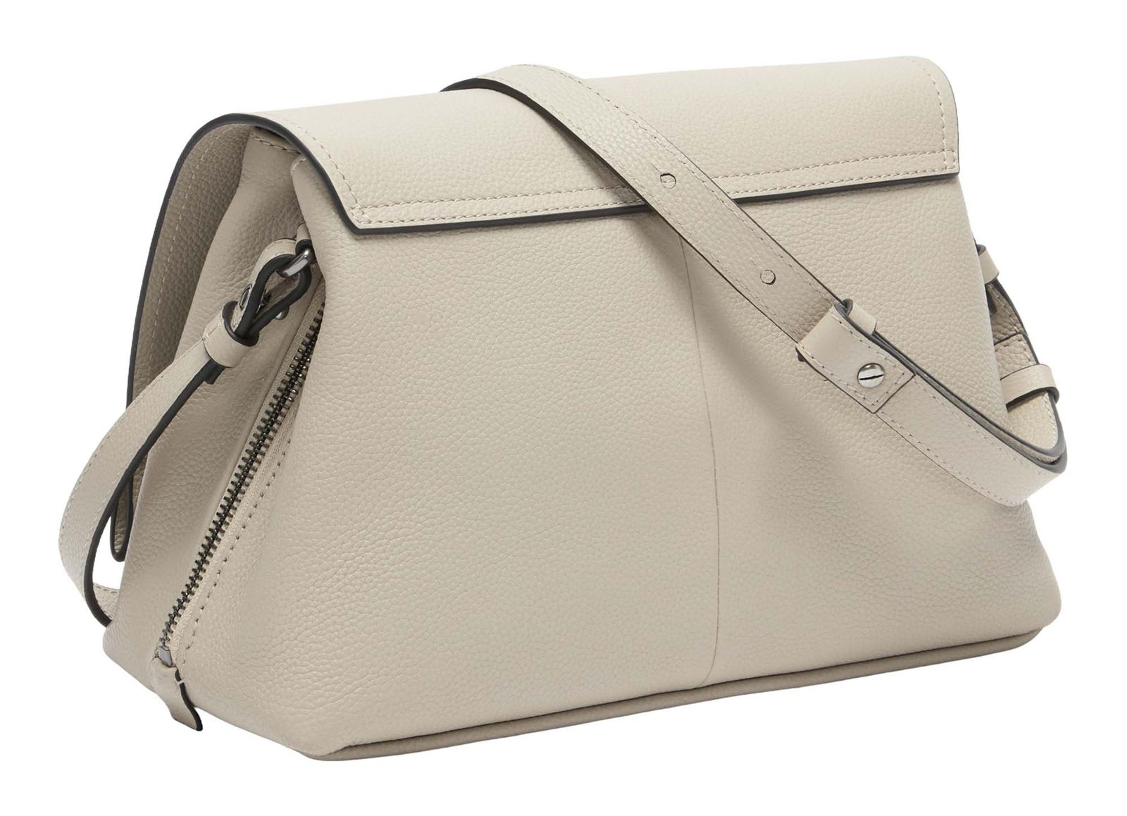 - cross body bag is closed with zipper, flap and magnetic closure