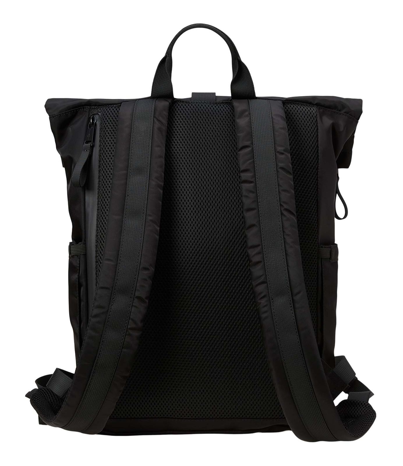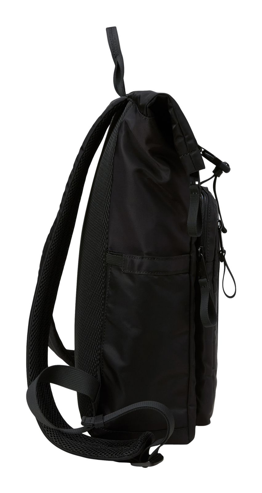 - backpack is closed with zipper, roll closure and infinitely adjustable clip closure