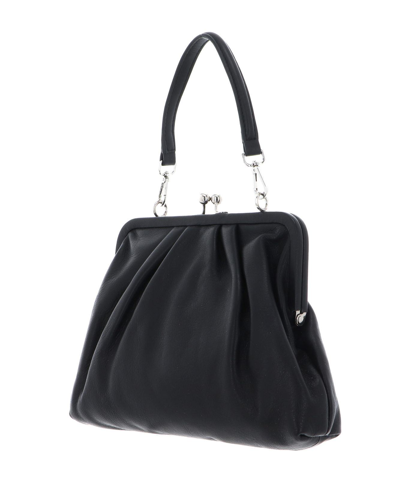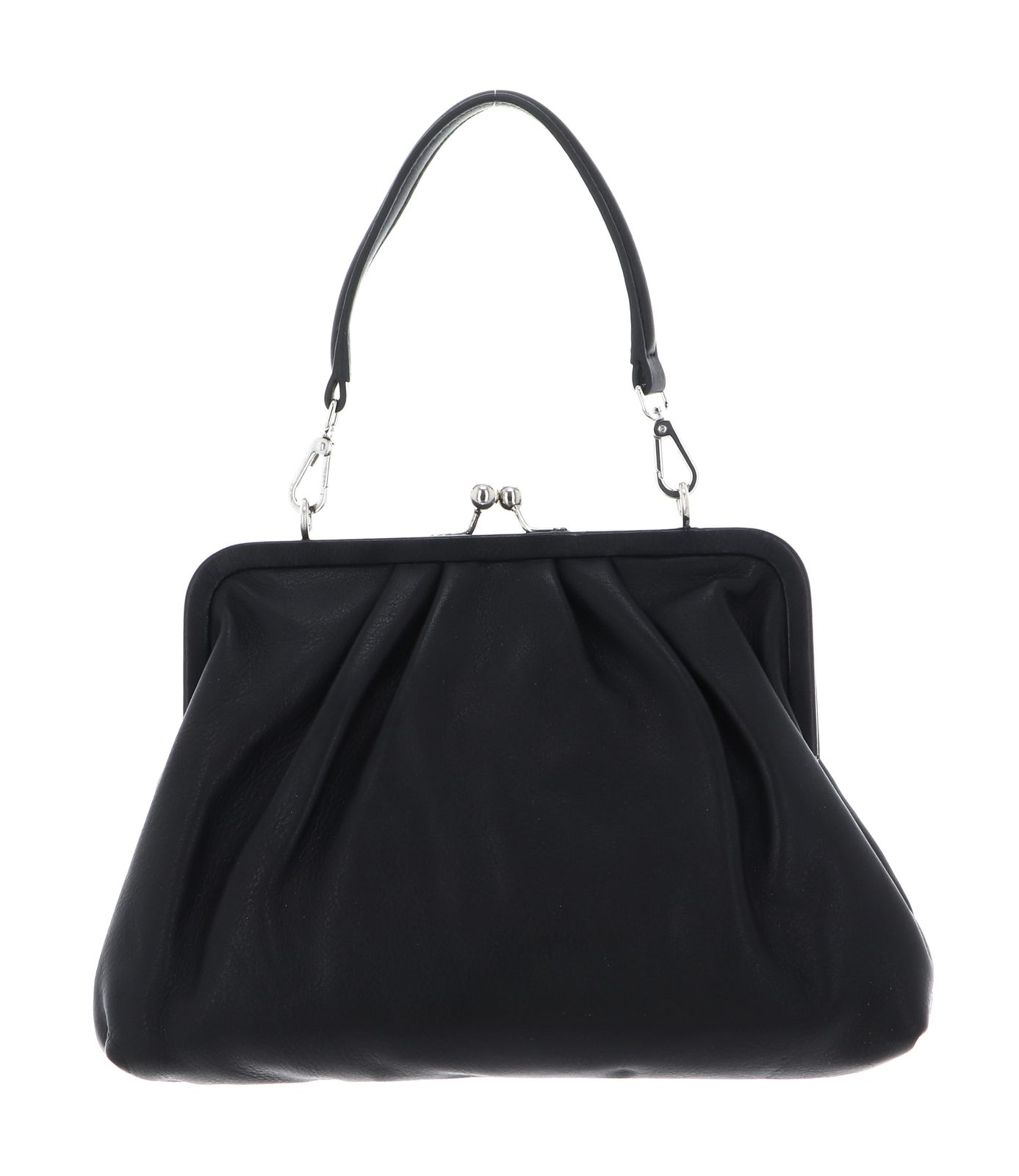 - handbag is closed with kiss lock clasp