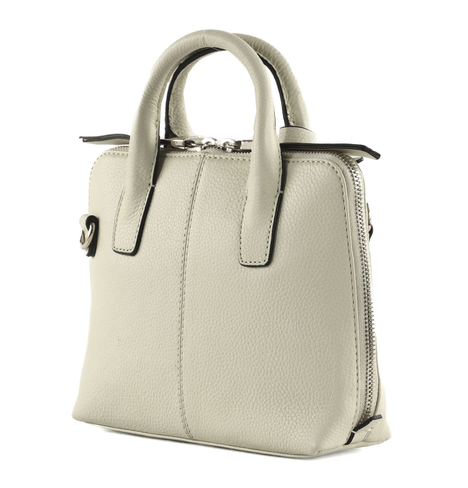 - handbag is closed with two-way zipper