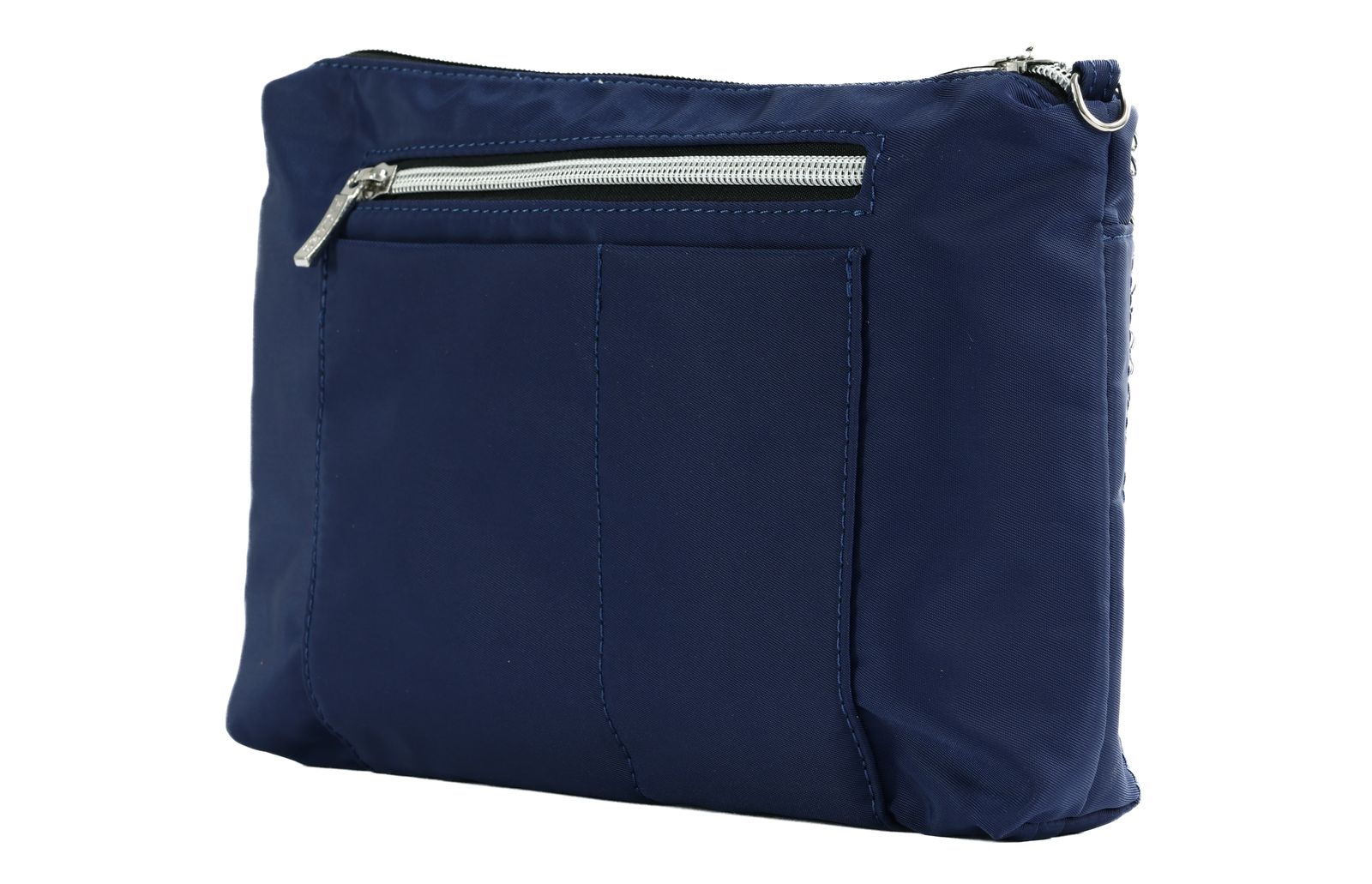 - On the back, 1 zipped compartment and 2 slide-in compartments