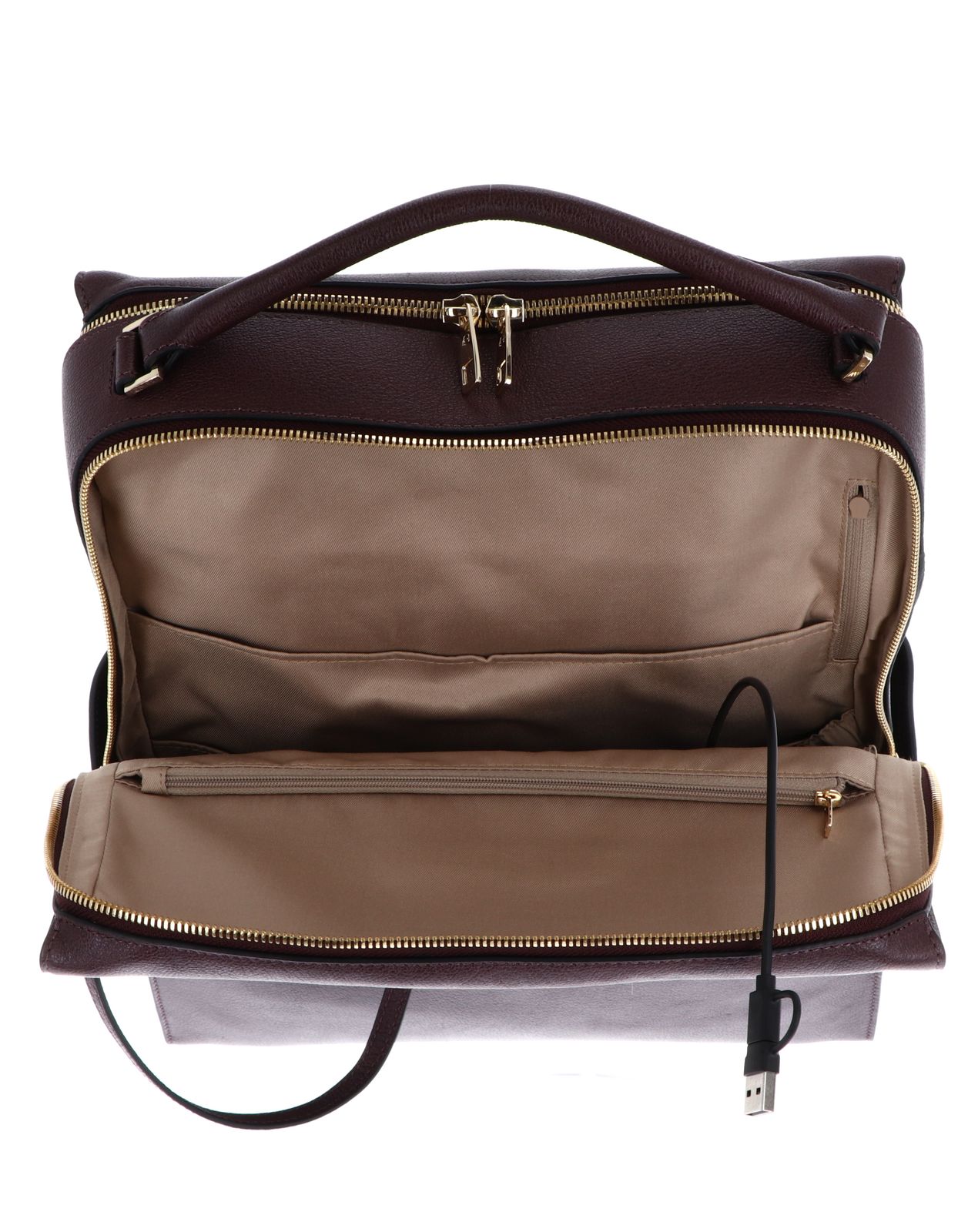 - Additionally in the front main compartment 1 USB-C cable and 1 USB-C port