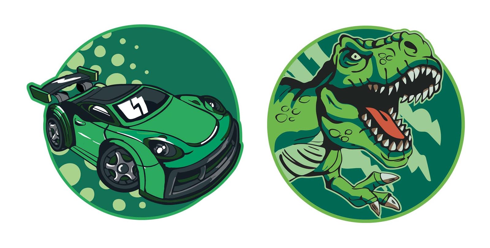 - Color: Car + Dino (green / dark green / black)