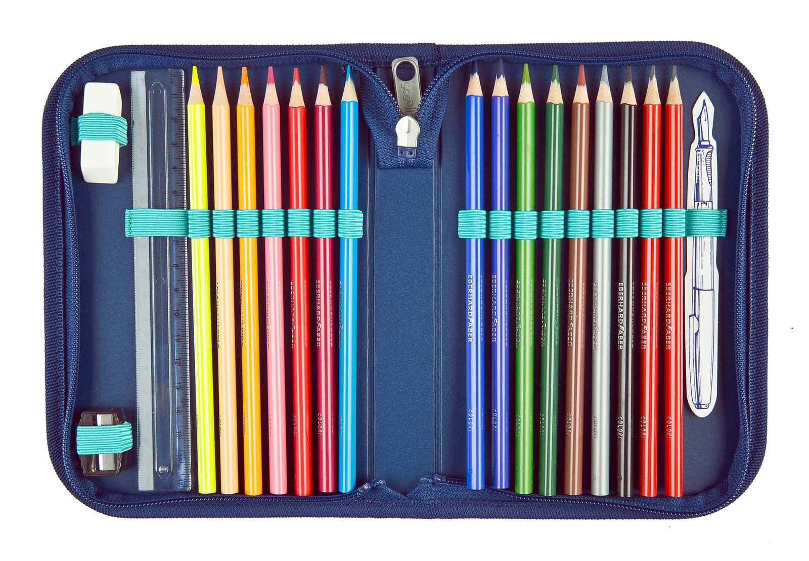 - In the main compartment 17 rubber loops for pens and 3 rubber loops for eraser, ruler etc.
