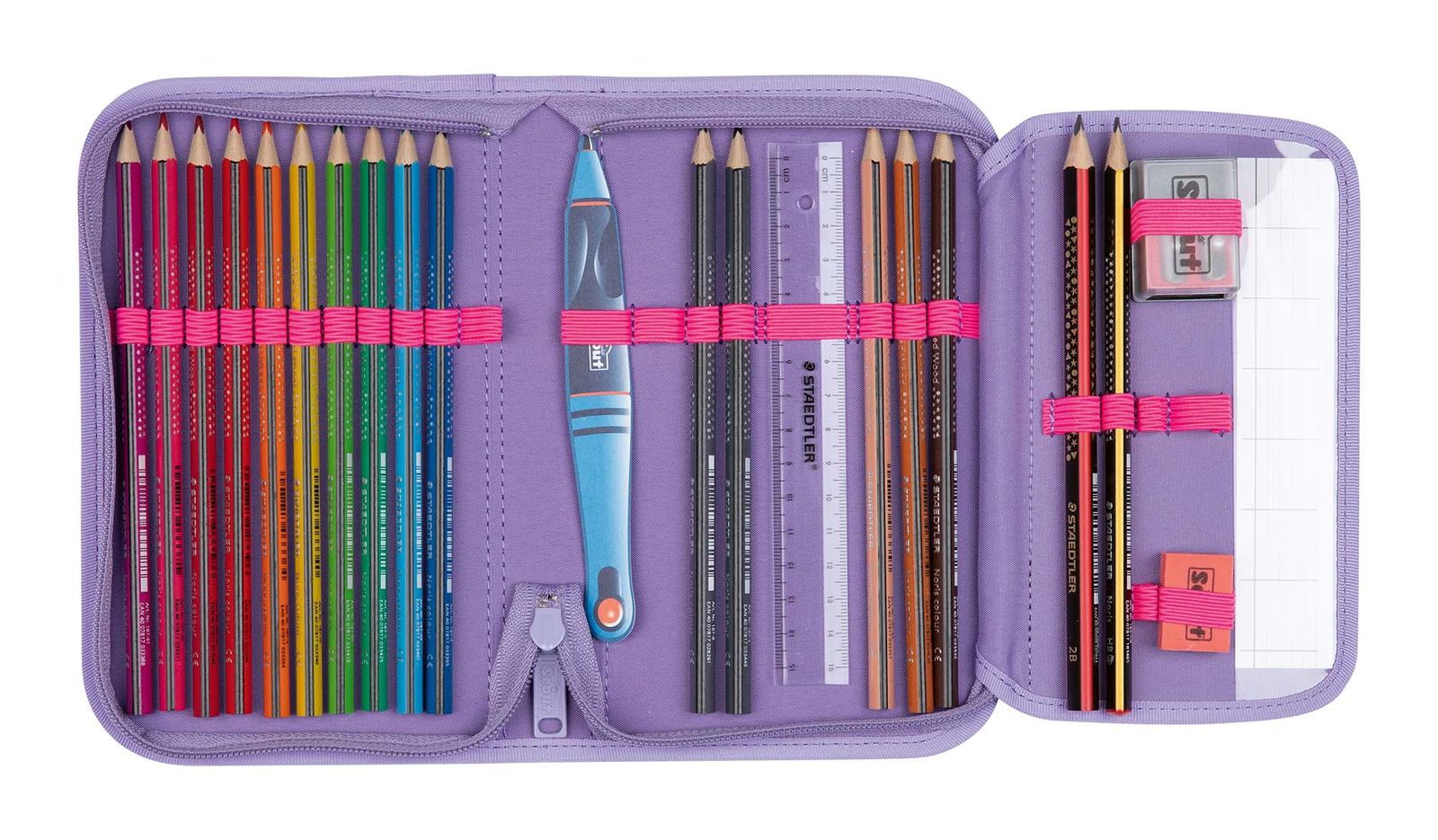 - Contents: Scout pencil case with label, 2 timetable, 15 pens, 1 ruler, 1 eraser, 1 pencil sharpener, 2 pencil