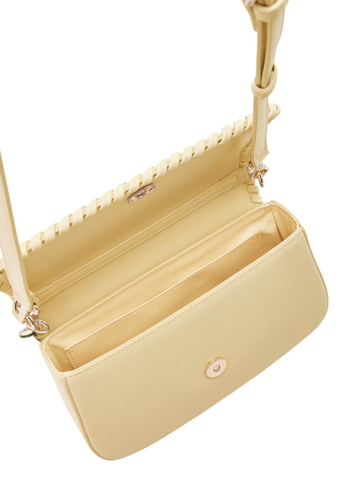 - handbag is closed with flap and magnetic closure