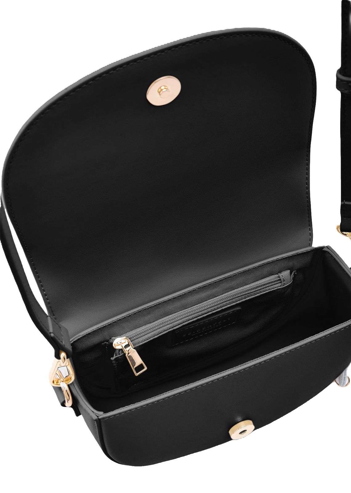 - shoulder bag is closed with flap and magnetic closure