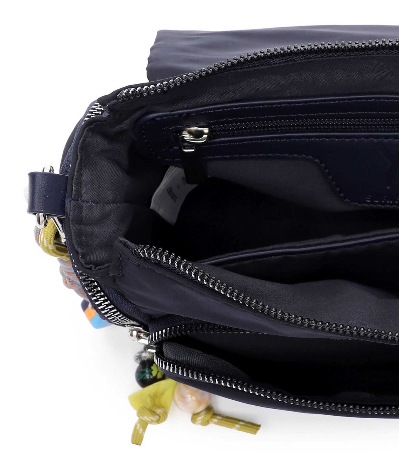 - cross body bag is closed with flap, magnetic closure and zipper