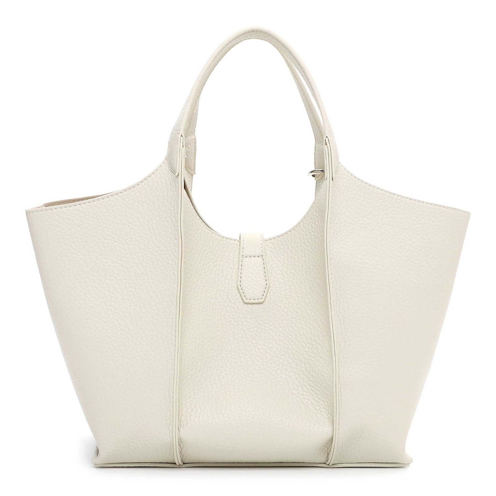- handbag is closed with flap and screw closure