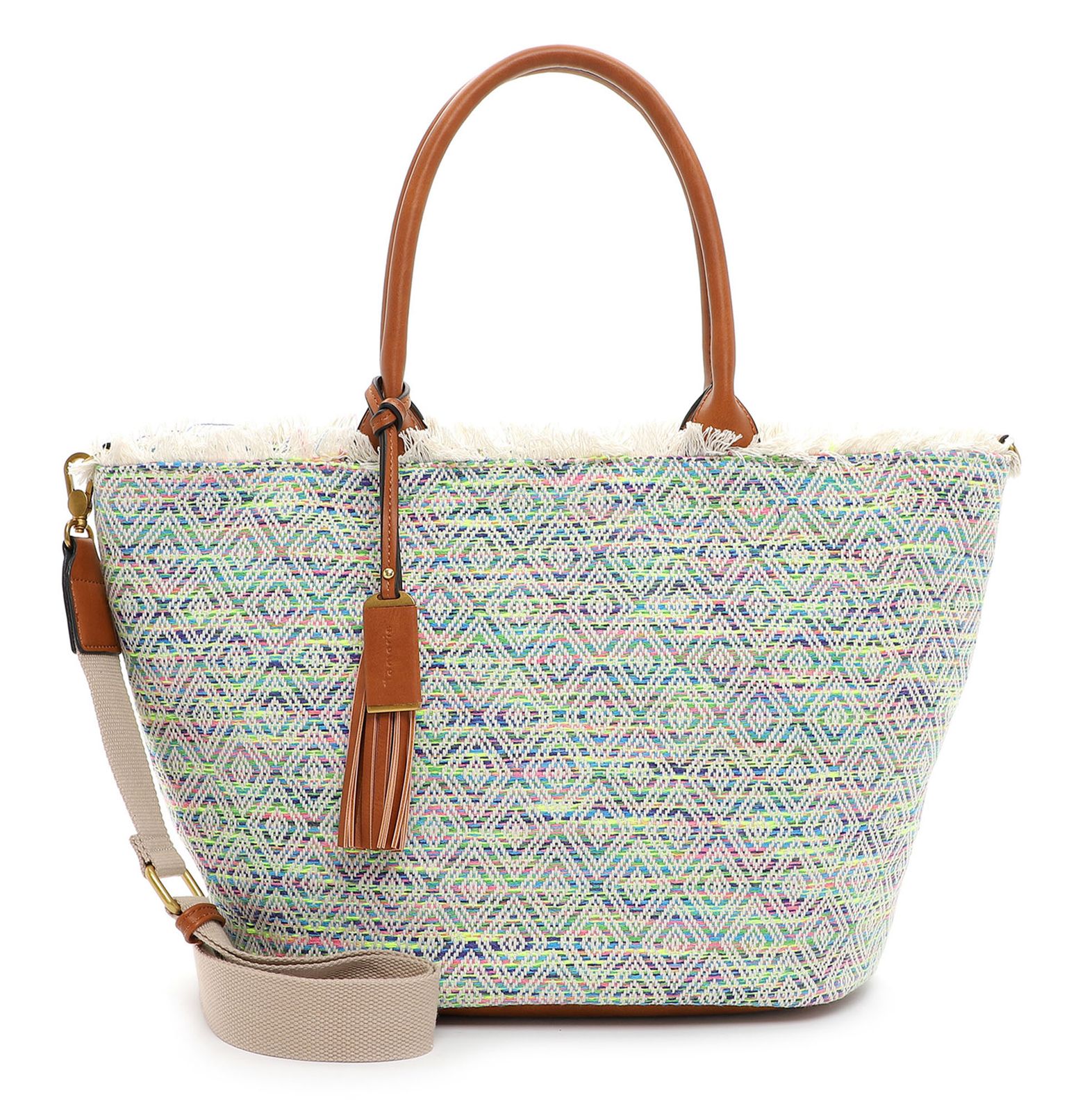 With this bag you start the day colorful . The spacious main compartment fits all your important utensils without any problems. Thanks to the small compartments, you can find key, wallet and more with a flick of the wrist. With the help of a detachable shoulder strap, you can freely choose whether you prefer to carry the bag over your shoulder, in your hand or crossover. The colorful woven ethnic pattern highlights this bag . With the Tamaris Arabella Shopper you have found your eye-catcher.