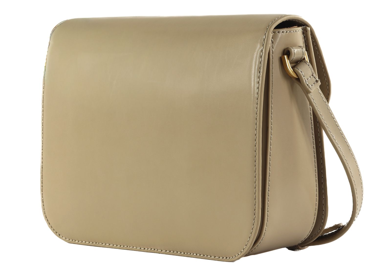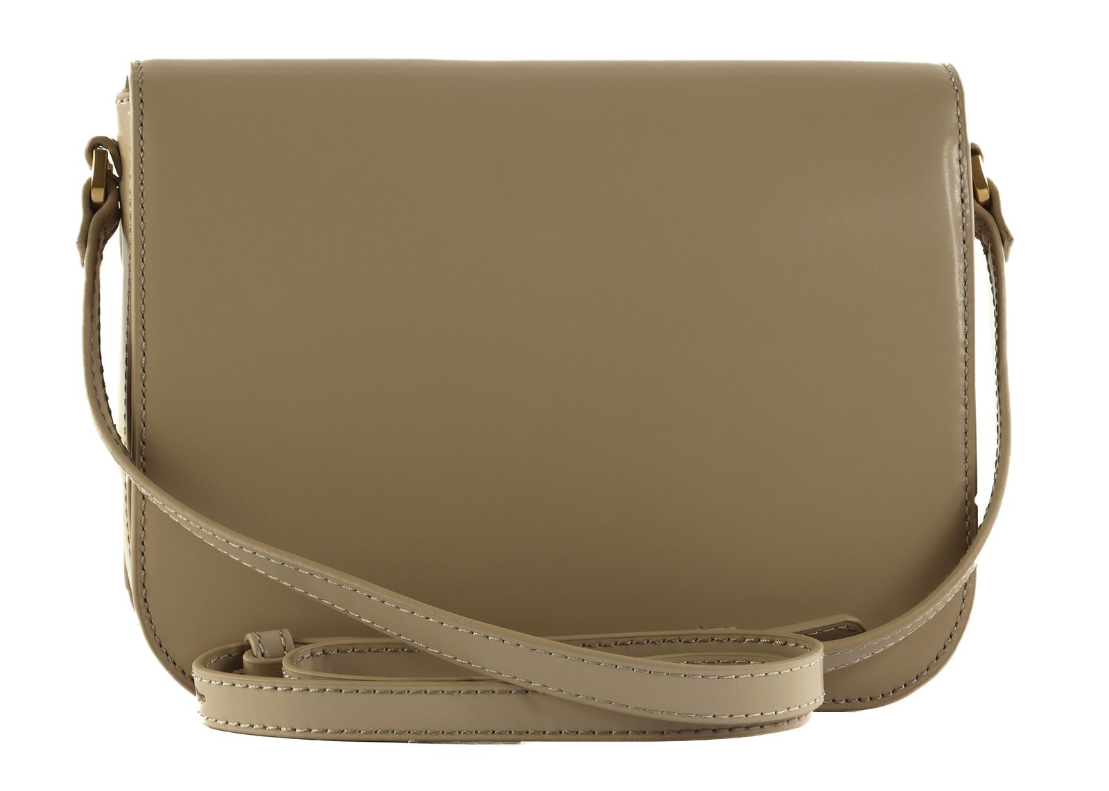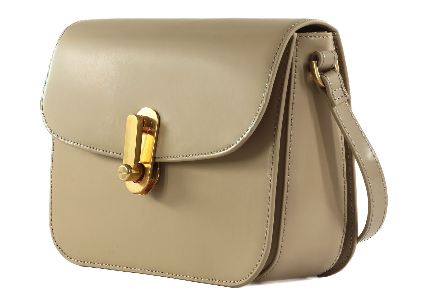 - cross body bag is closed with flap and screw closure