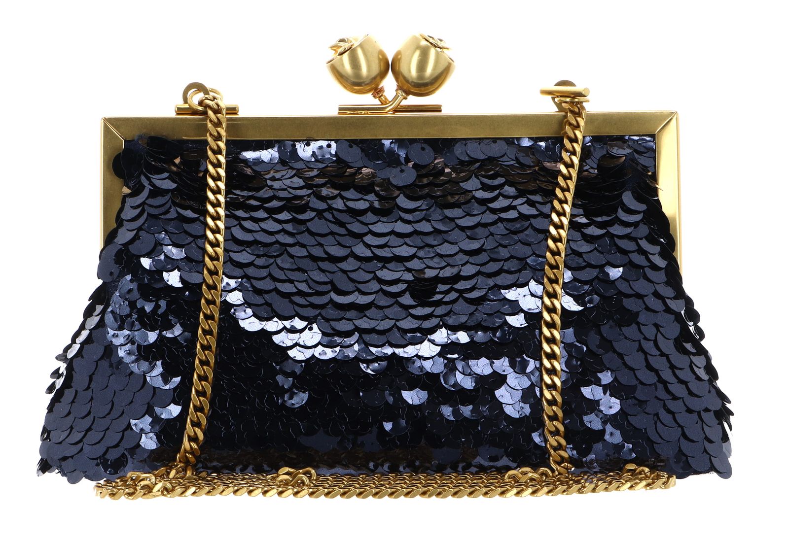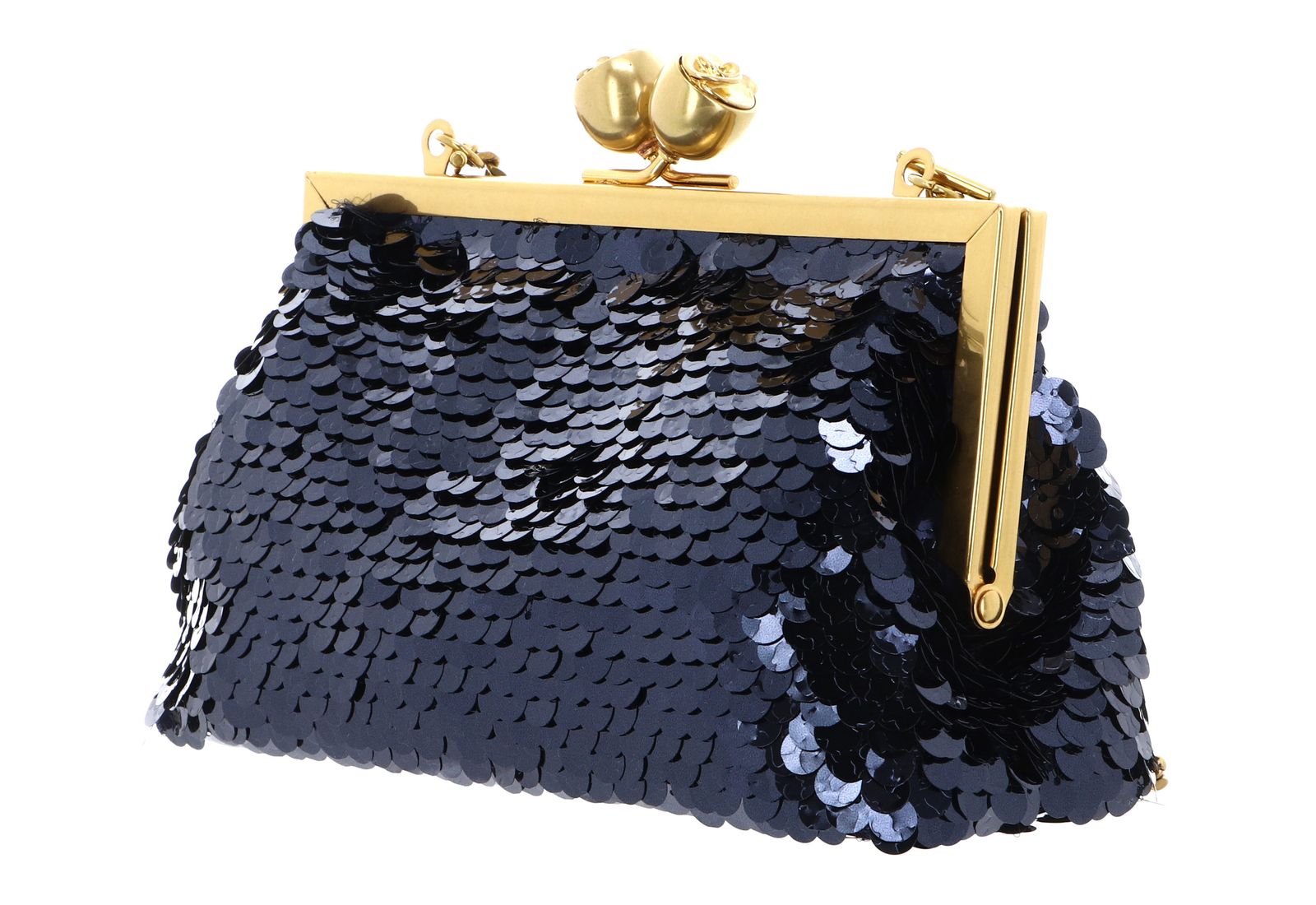- evening bag is closed with kiss lock clasp
