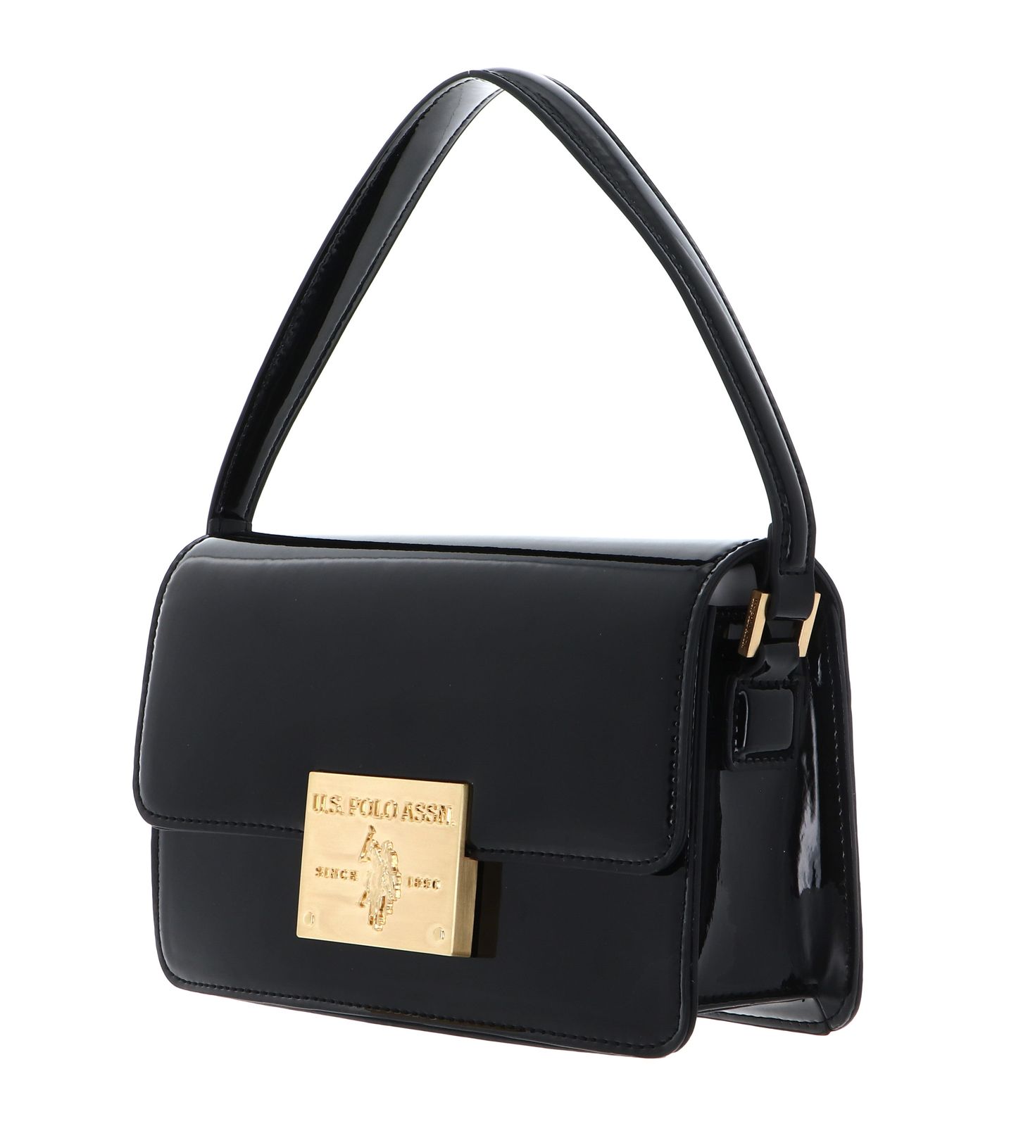 Winton Flap Handle Bag Black Patent Leather
