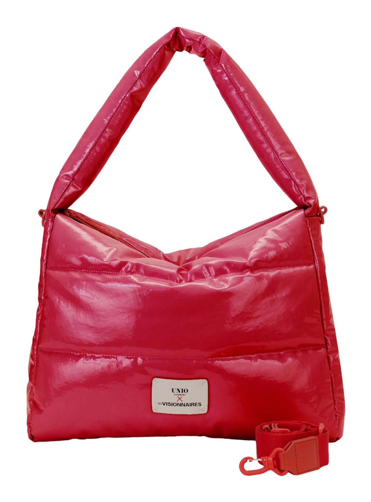 A relaxed shoulder bag that convinces all along the line! This chic Unio Hamburg x Les Visionnaires shoulder bag inspires with its fashionable design and chic vinyl look. Alternatively, you can wear the bag comfortably as a cross body bag . The bag can be conveniently adjusted and worn on the removable shoulder strap , so you have both hands free. For the next date in the city or for a cocktail evening with friends, the Unio Hamburg x Les Visionnaires Lacquer Unio Hobo is the perfect eye-catcher!