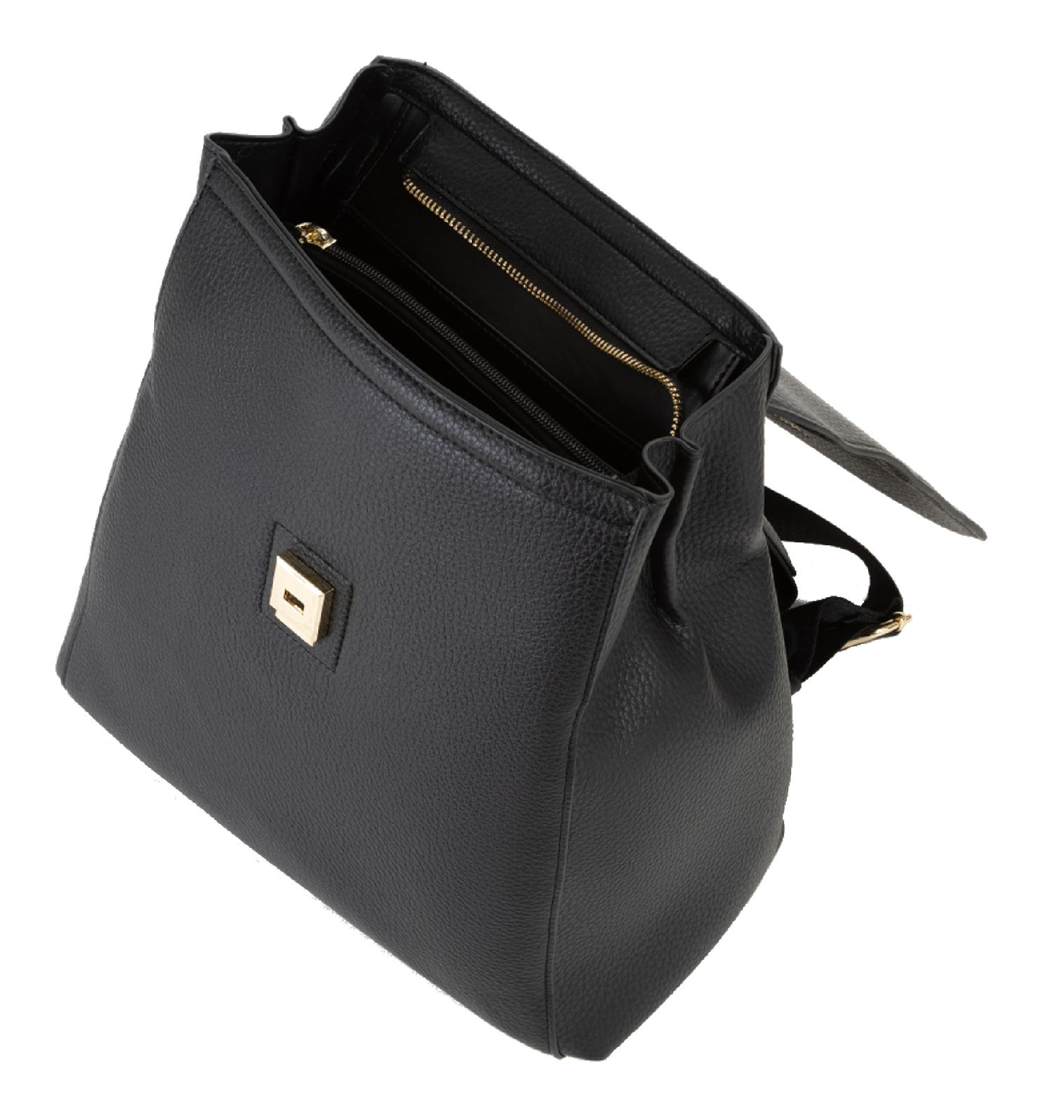 - backpack is closed with flap and snap lock