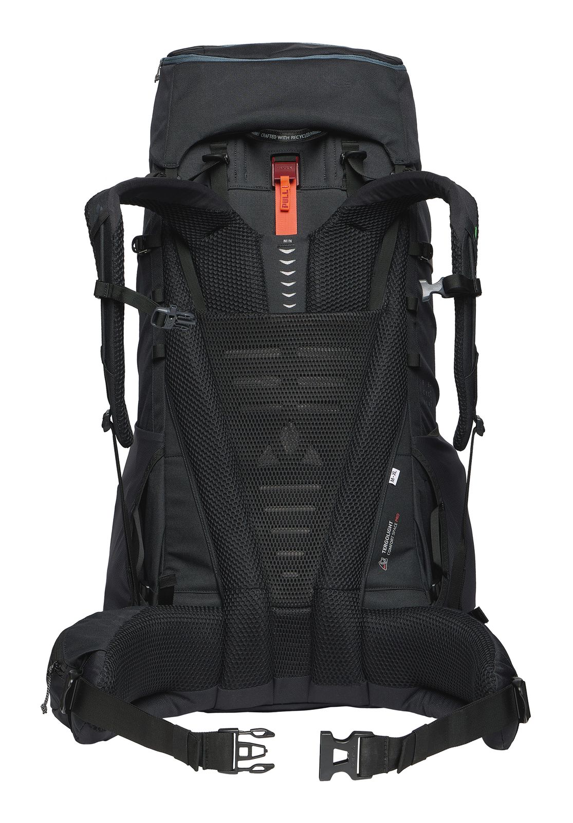 - Equipped with wide opening, washable material, height-adjustable chest strap, signal whistle at chest strap buckle and load control belts on the shoulder straps