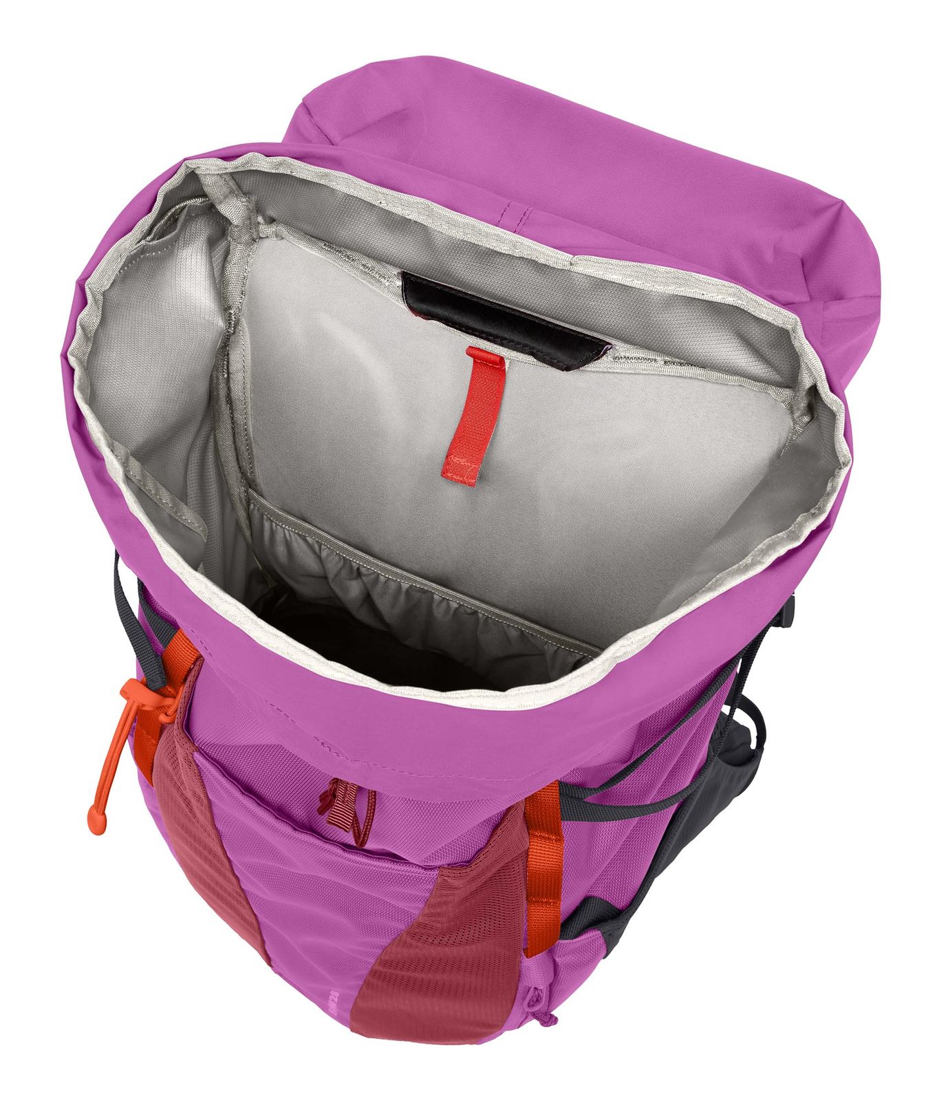 - In the main compartment 1 elastic hydration bladder compartment, 1 flap with hook-and-loop fastener for hydration systems and 1 drinking tube entry