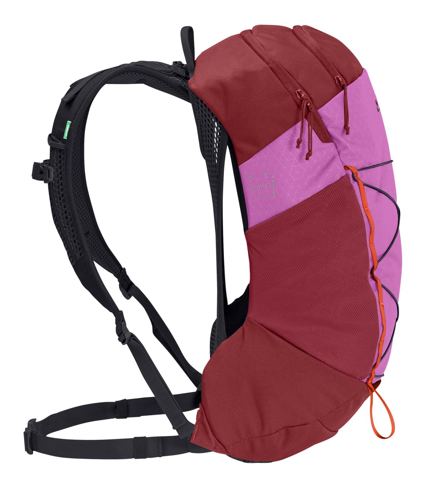 - On the left side 1 elastic mesh compartment for drinking bottles