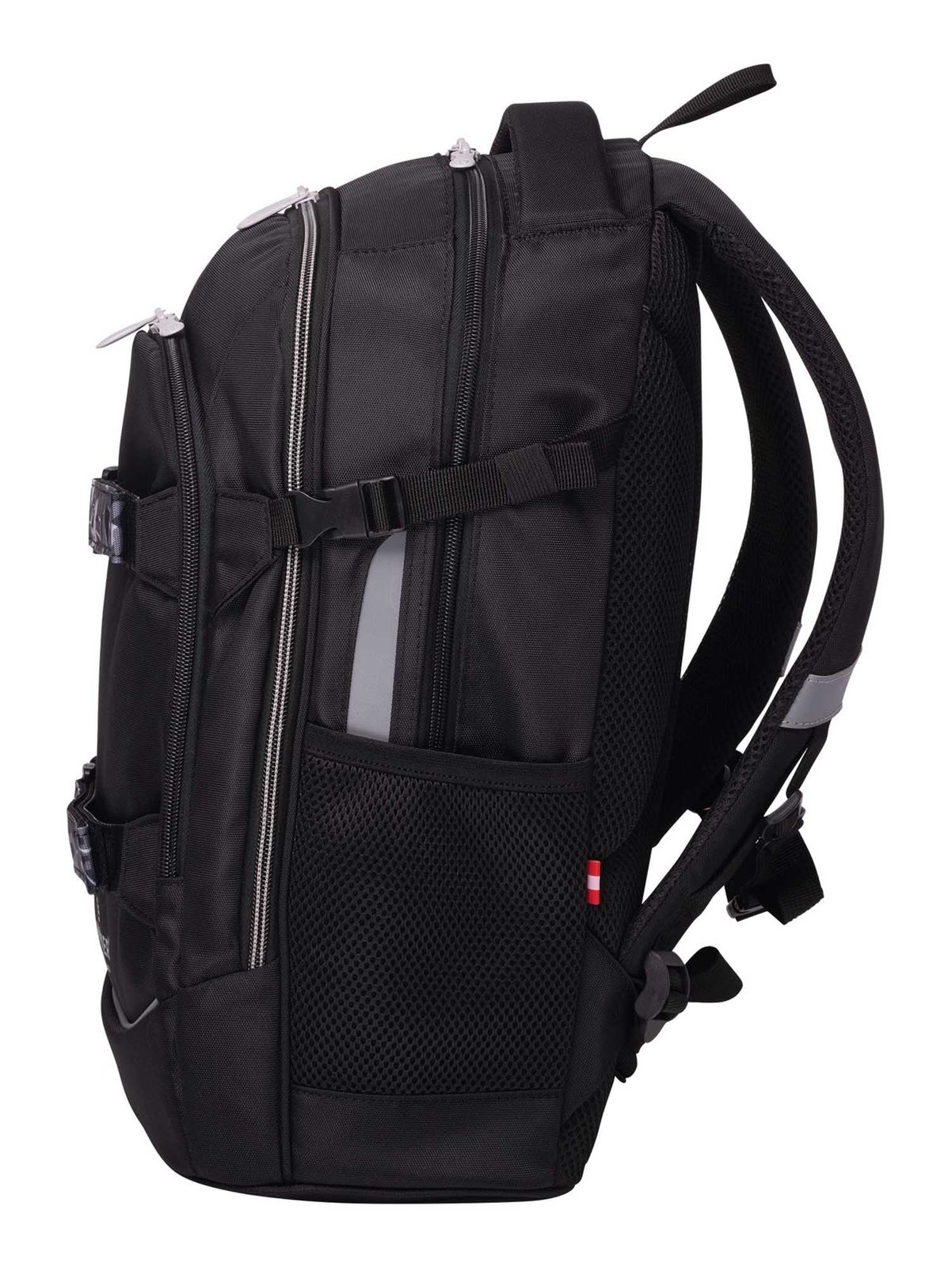 - On the front, 1 zipped compartment, in which there is 1 zipped compartment, 2 slide-in compartments and 2 pen holders