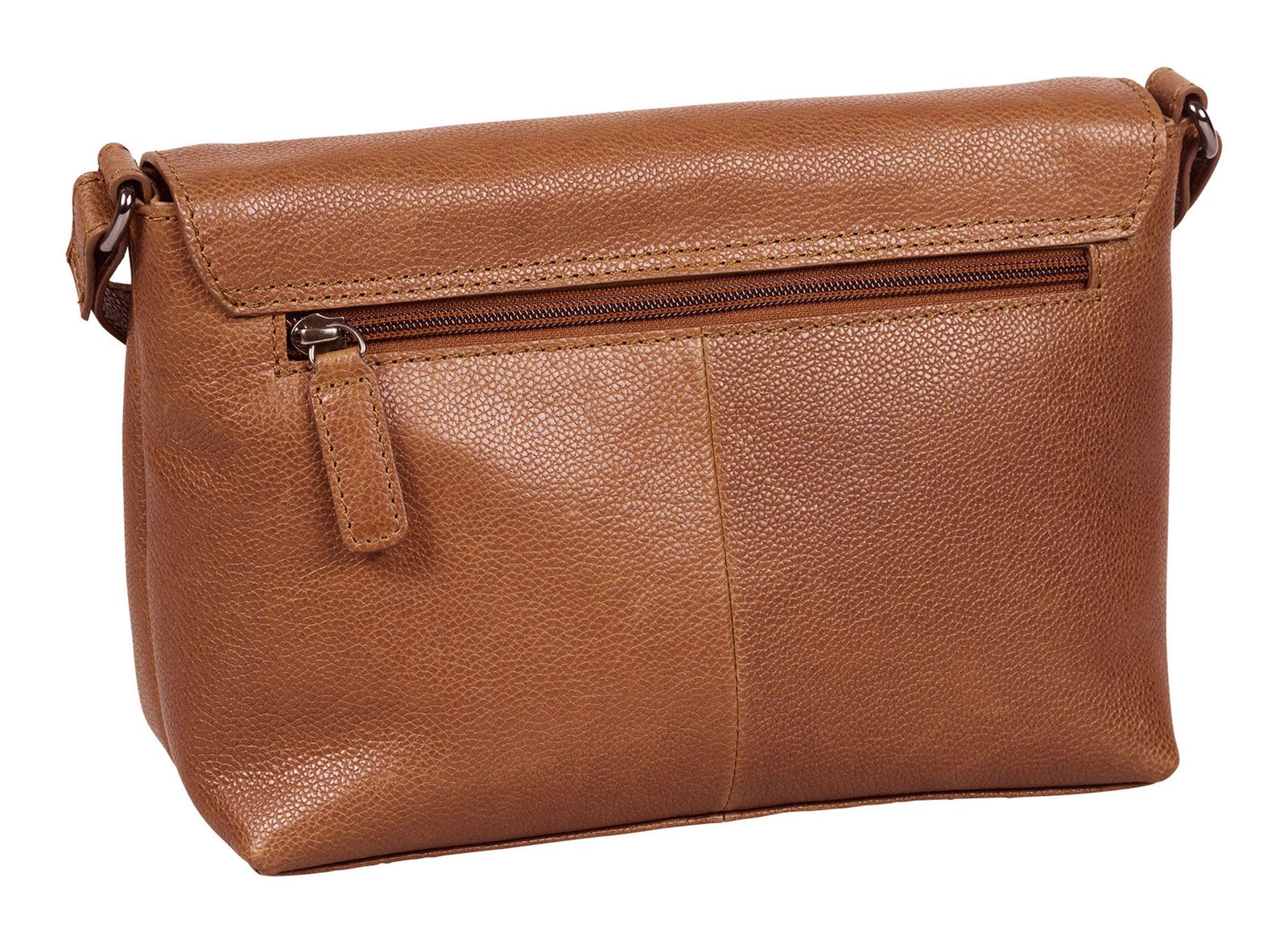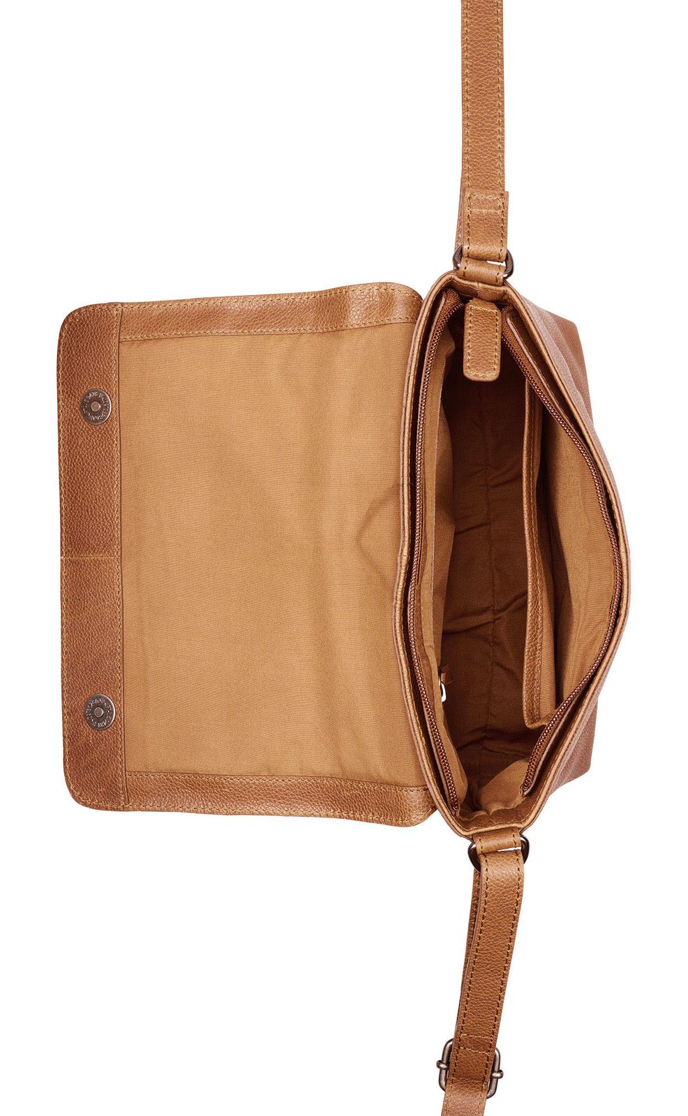 - cross body bag is closed with zipper, flap and magnetic closure