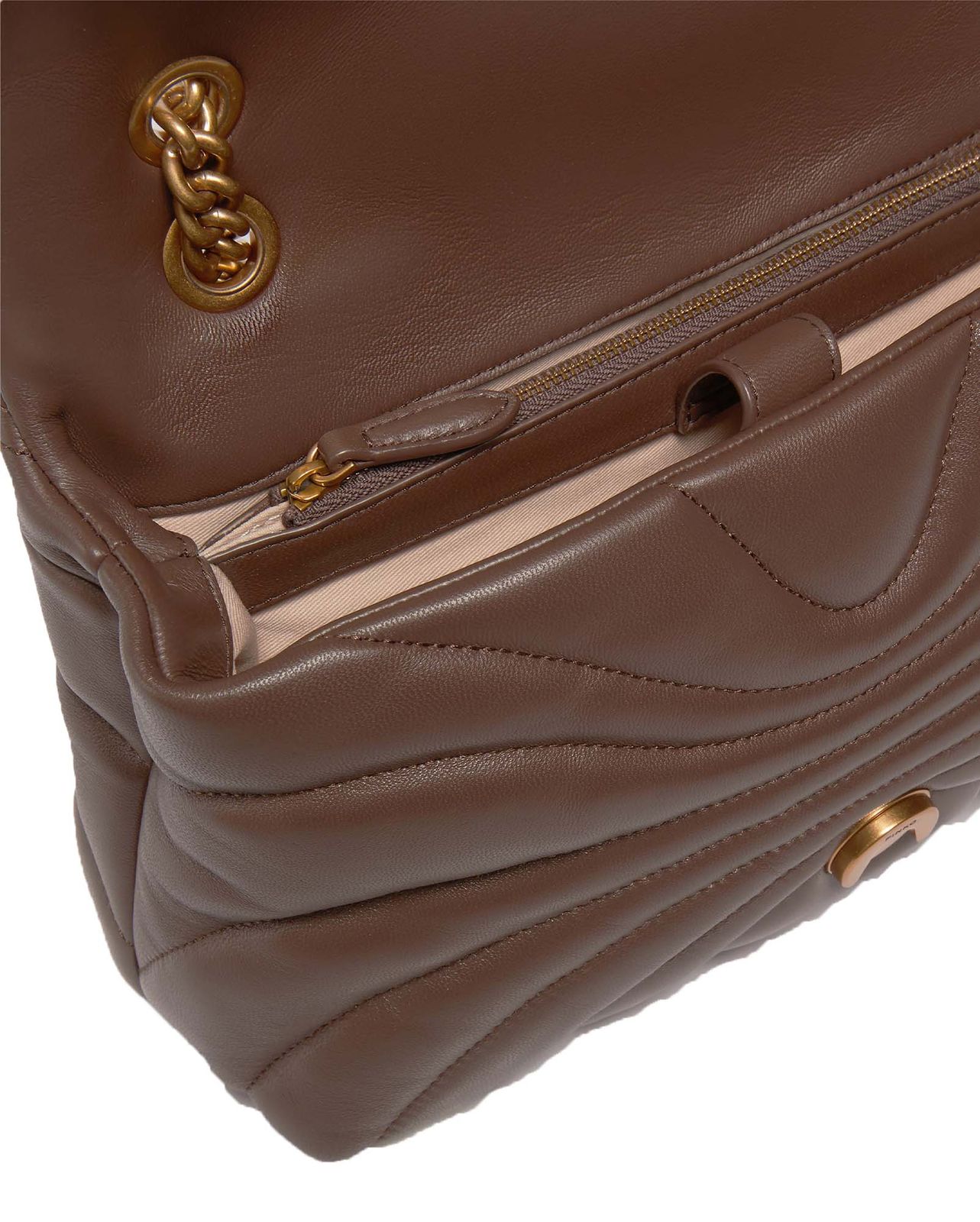 Love Puff Classic CL Sheep Nappa Quilt M Marrone Castano - Antique Gold