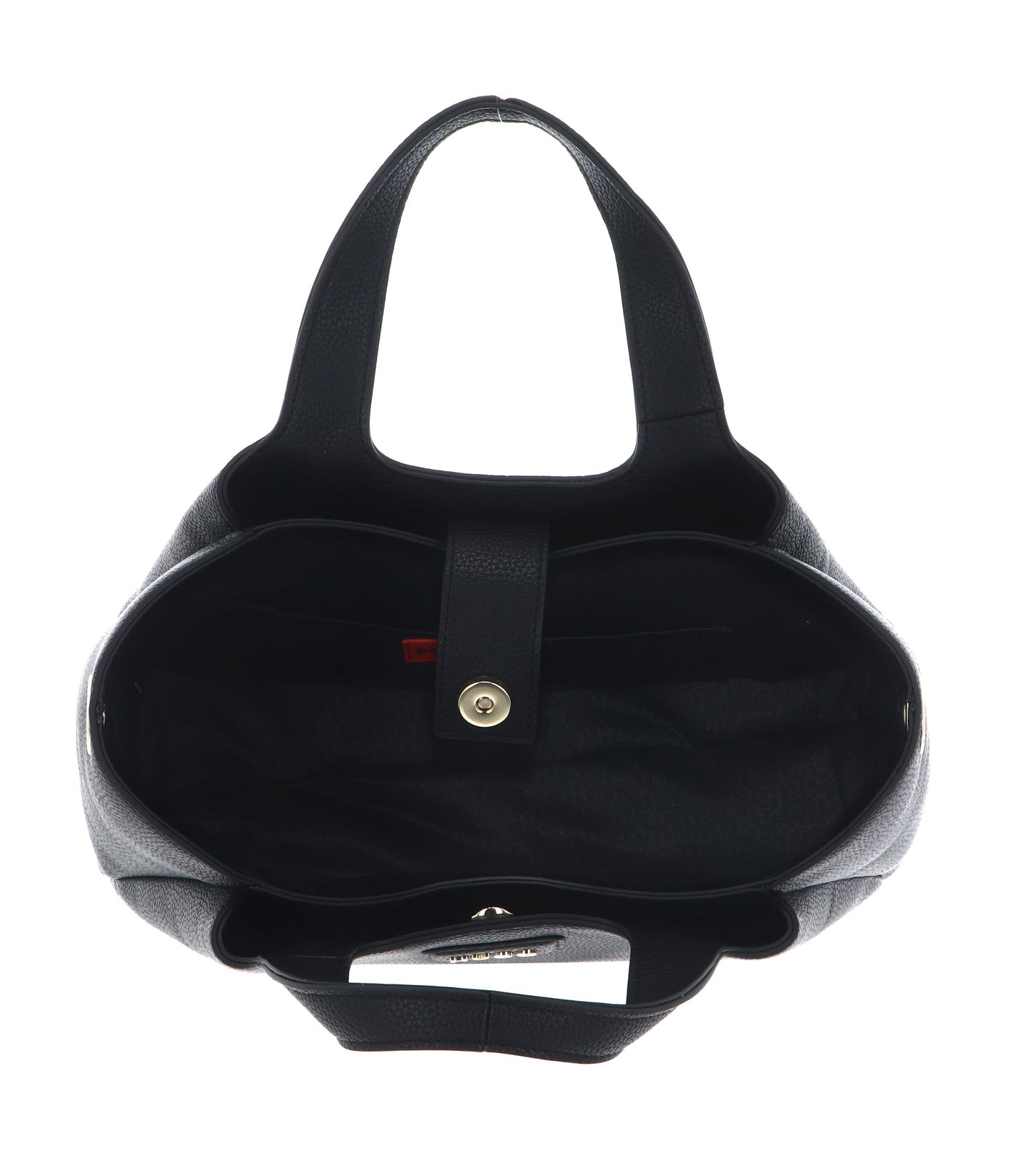 - handbag is closed with flap and magnetic closure