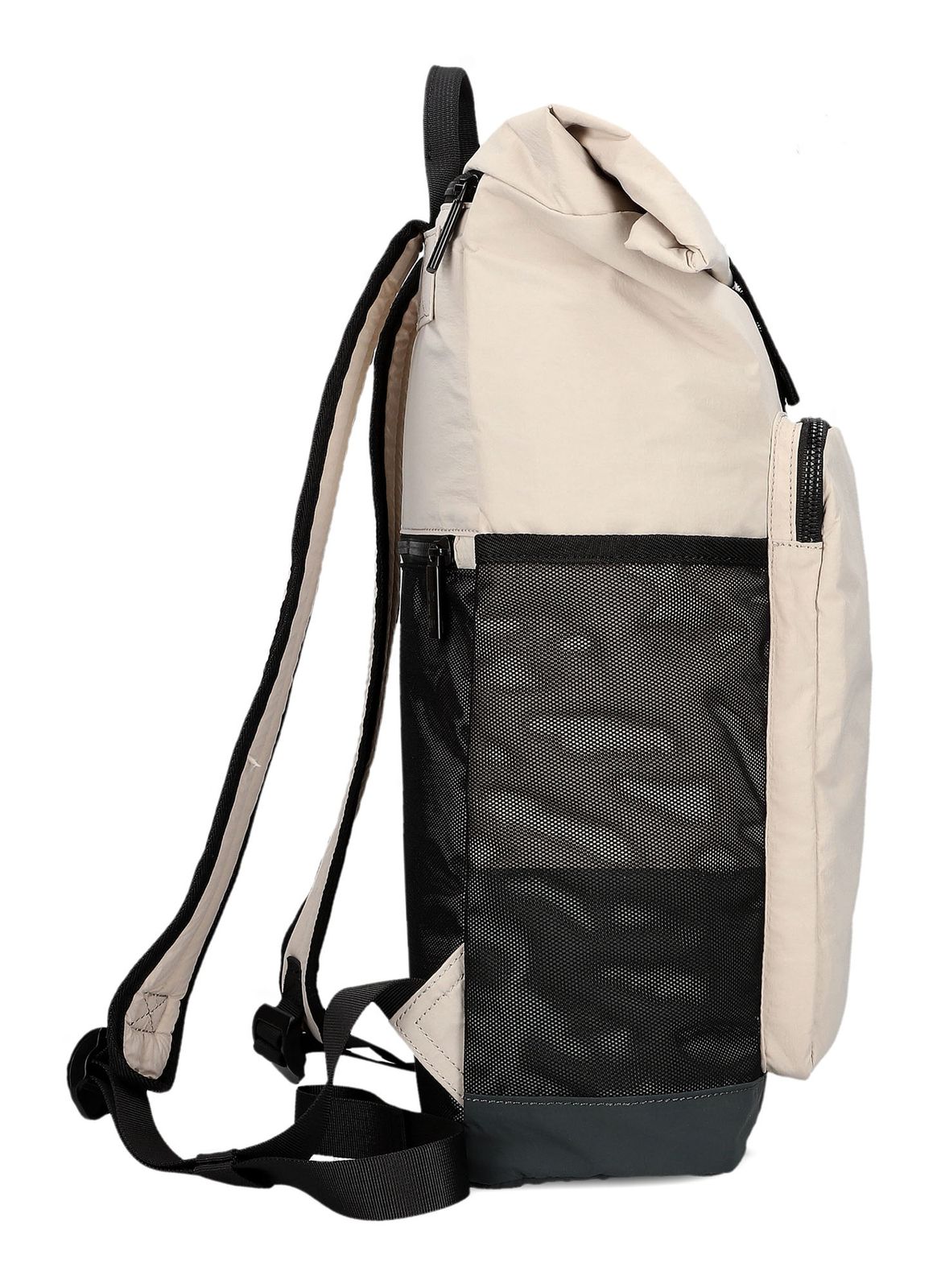 - In the main compartment 1 padded laptop compartment with elastic flap and hook-and-loop fastener, 1 mesh zipper pocket, 1 mesh pocket, 1 slide-in compartment, 1 key fob and 1 slide-in compartment with elastic band for water bottles
