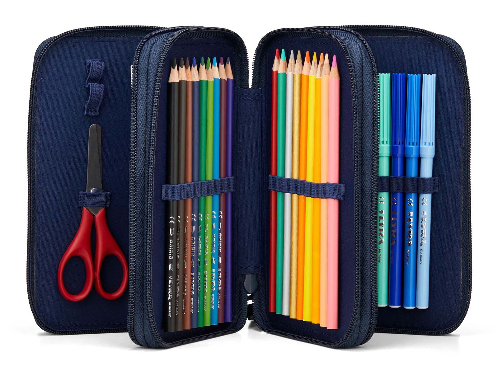 - Lieferumfang: ergobag Federmäppchen mit Etikett, 1 x Lineal, 18 x Buntstift, 1 x Radiergummi, 1 x Spitzer, 18 x Filzstift, 1 x Schere, 2 x Bleistift