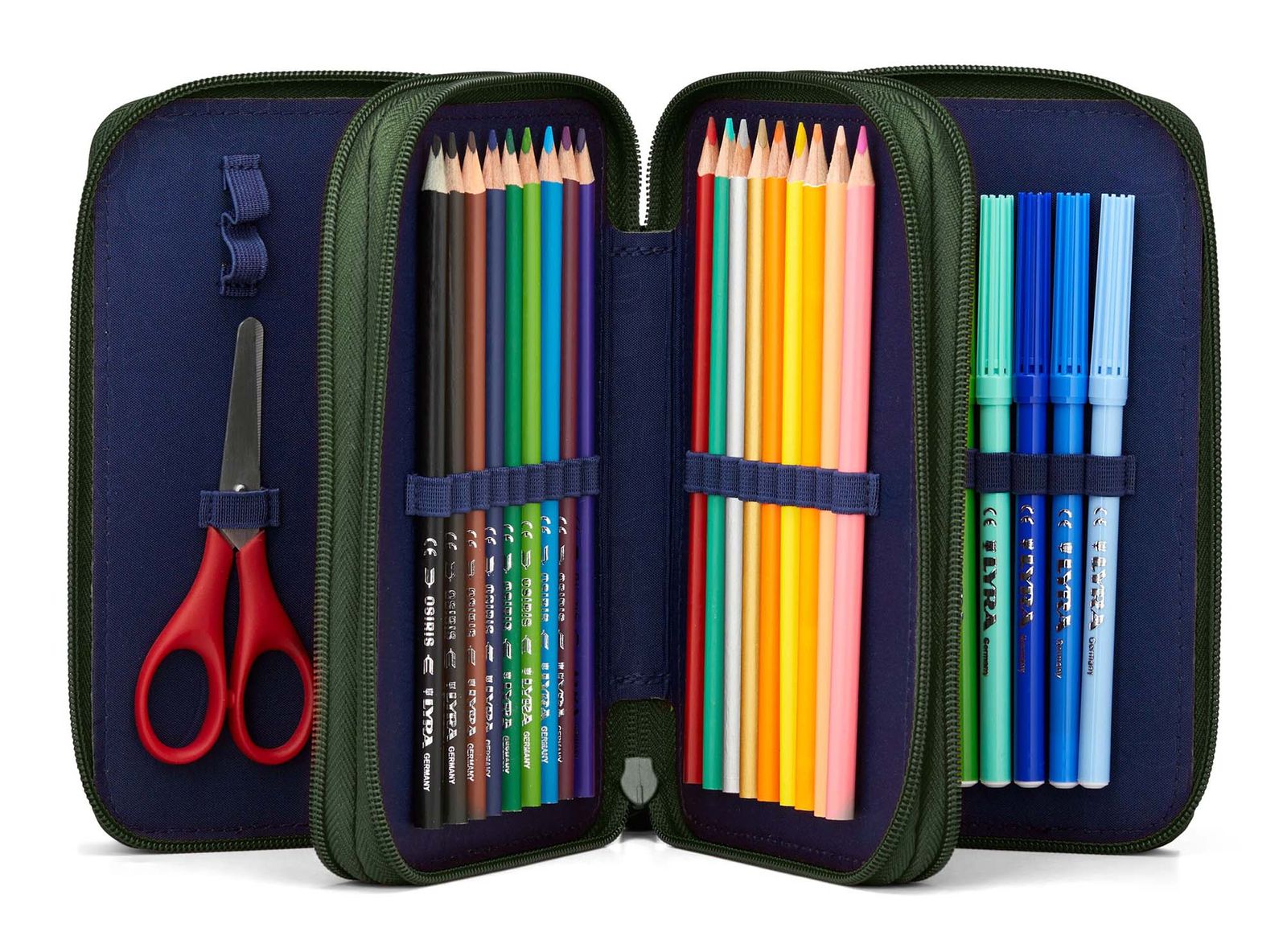 - Lieferumfang: ergobag Federmäppchen mit Etikett, 1 x Lineal, 18 x Buntstift, 1 x Radiergummi, 1 x Spitzer, 18 x Filzstift, 1 x Schere, 2 x Bleistift