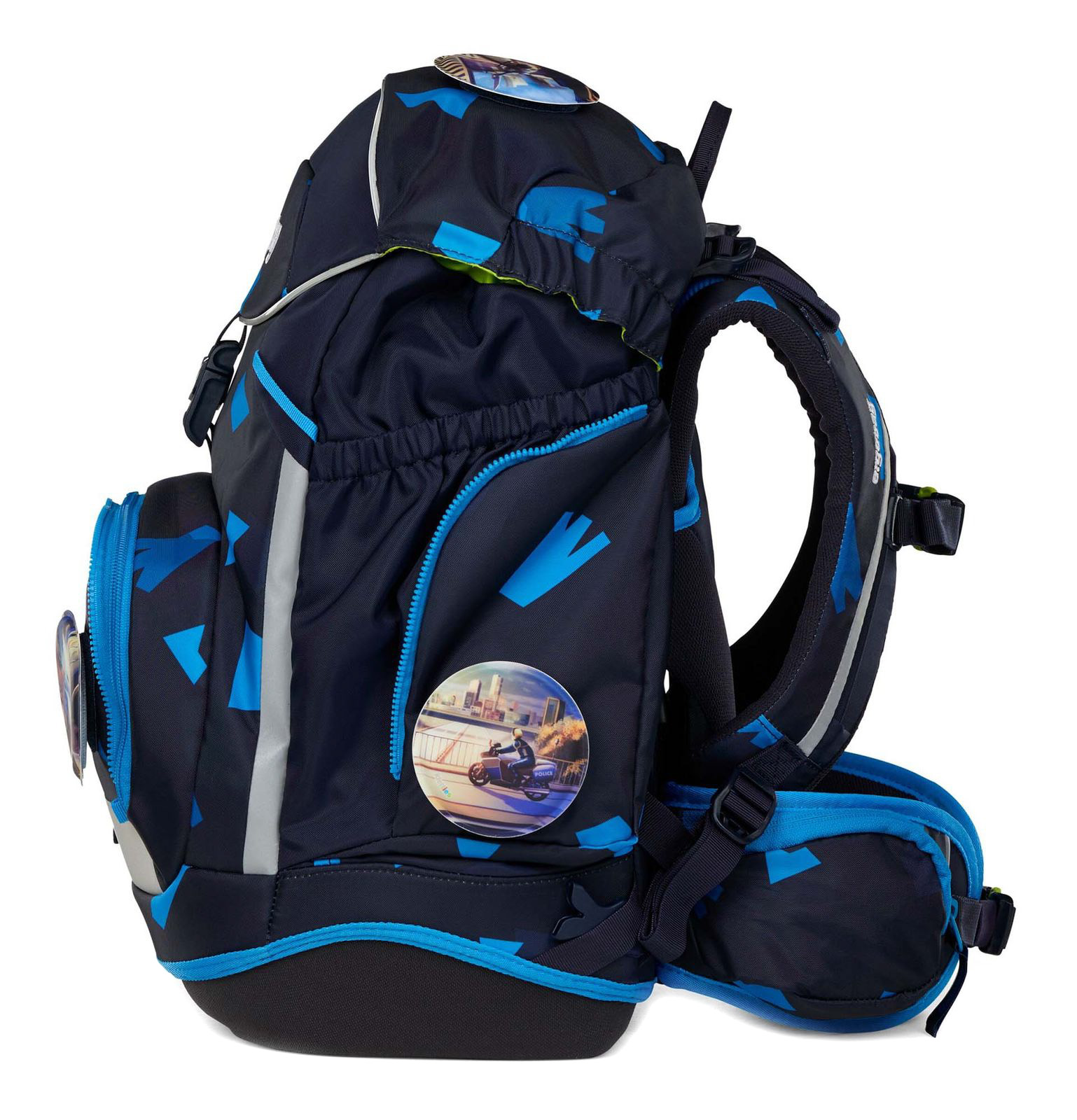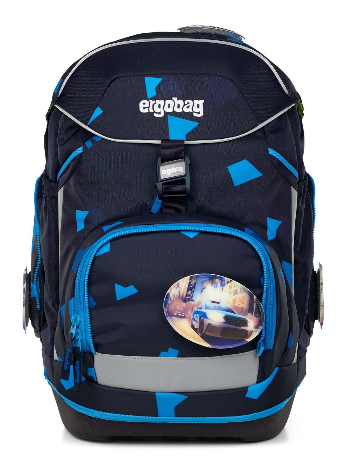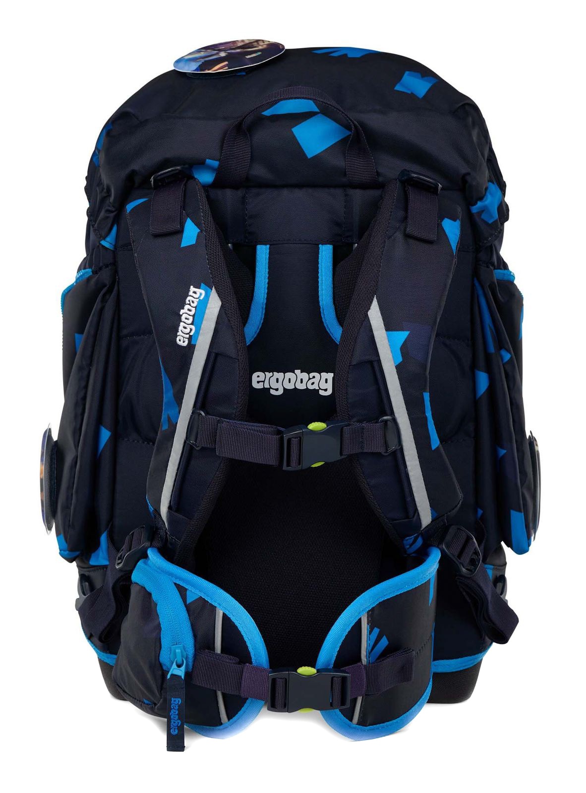 - Lieferumfang: ergobag Schulranzen mit Etikett, 5 x Kletties mit Klettverschluss, 1 x Trennwand, 1 x Beckenflosse mit Hüftgurt