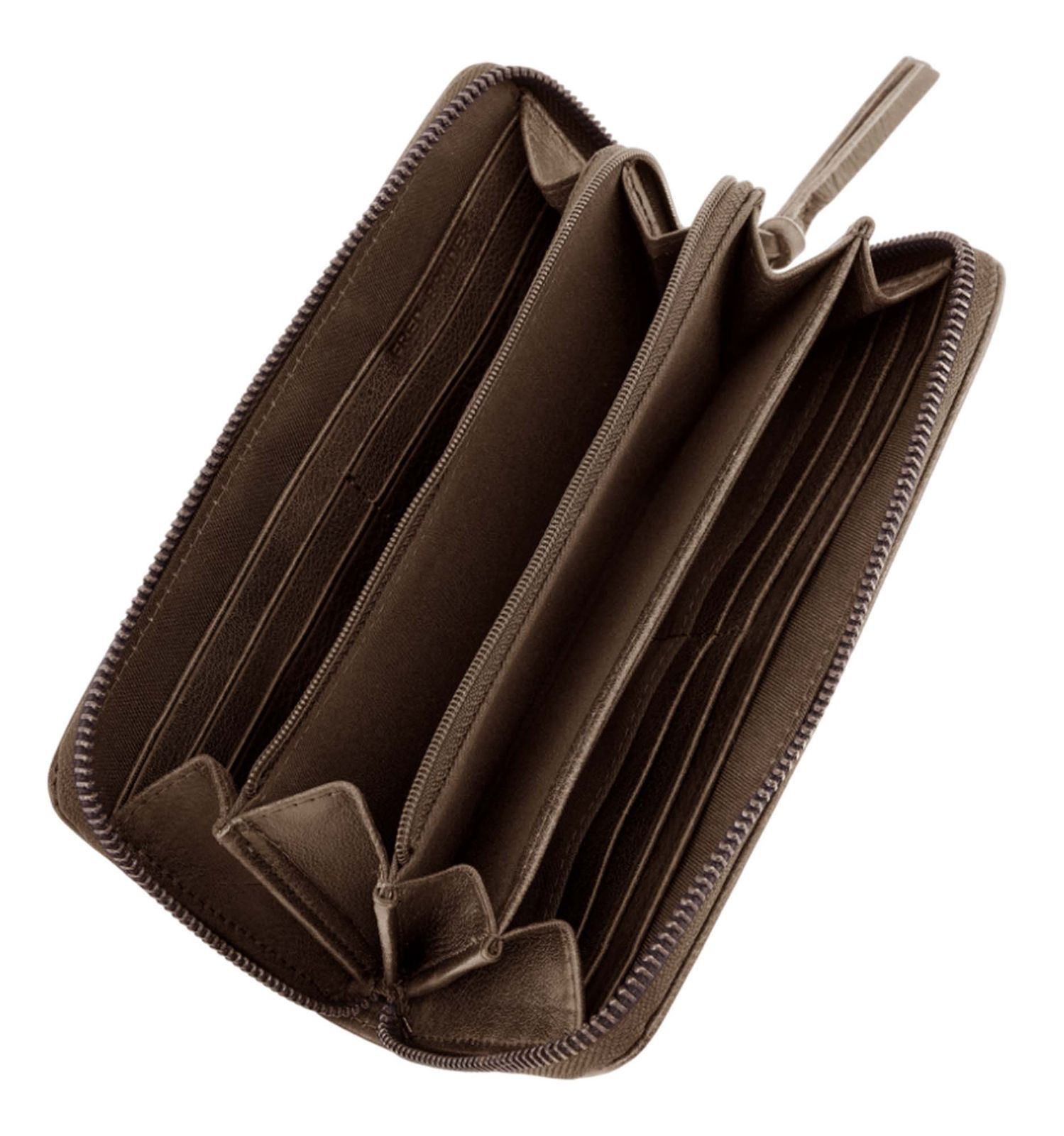 - Geldbörse wird mit Zipper geschlossen