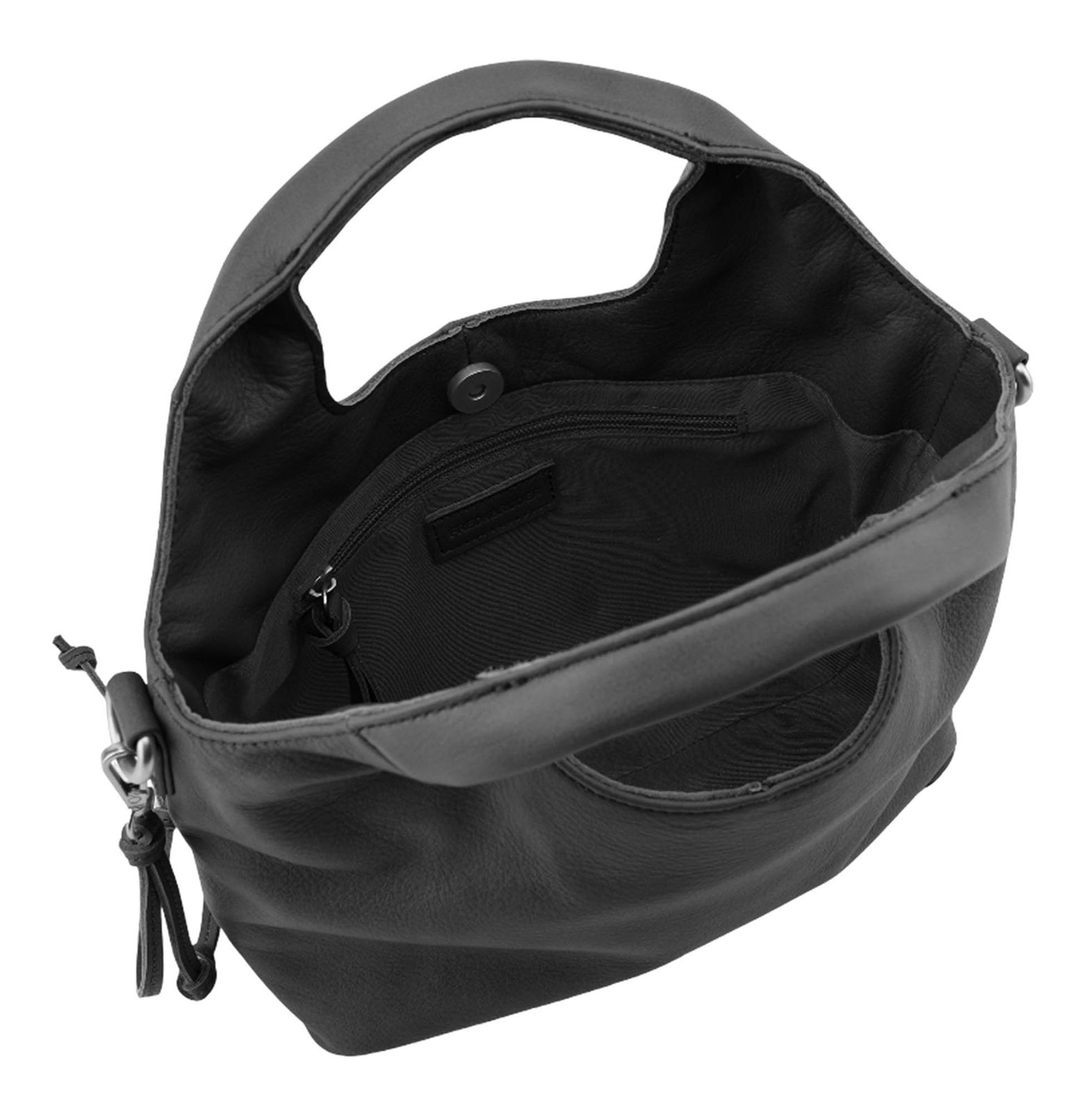 - Handtasche wird mit Zipper geschlossen