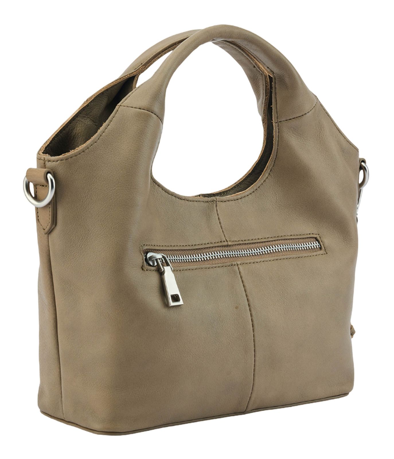 - Handtasche wird mit Zipper geschlossen