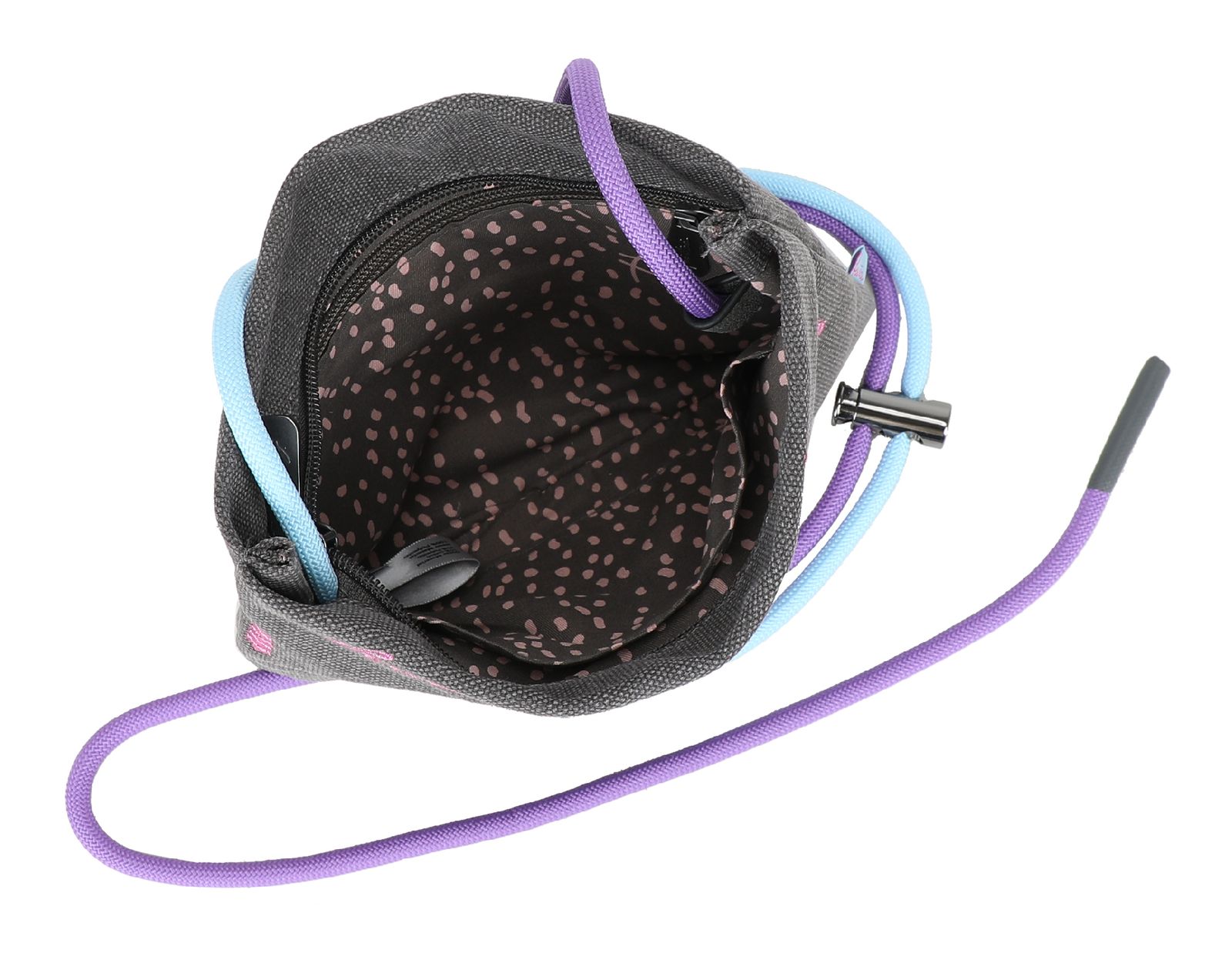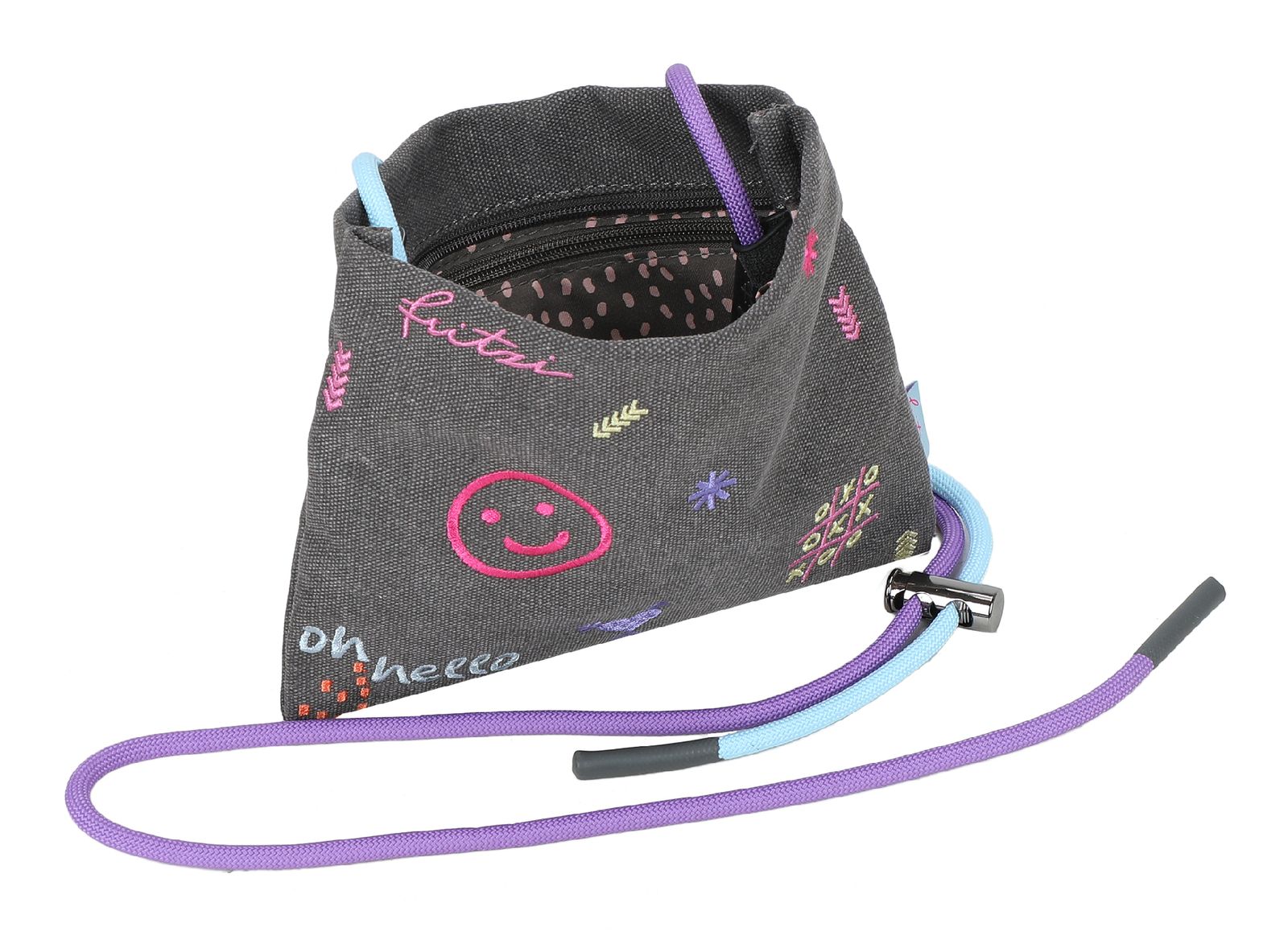 - Umhängetasche wird mit Zipper geschlossen