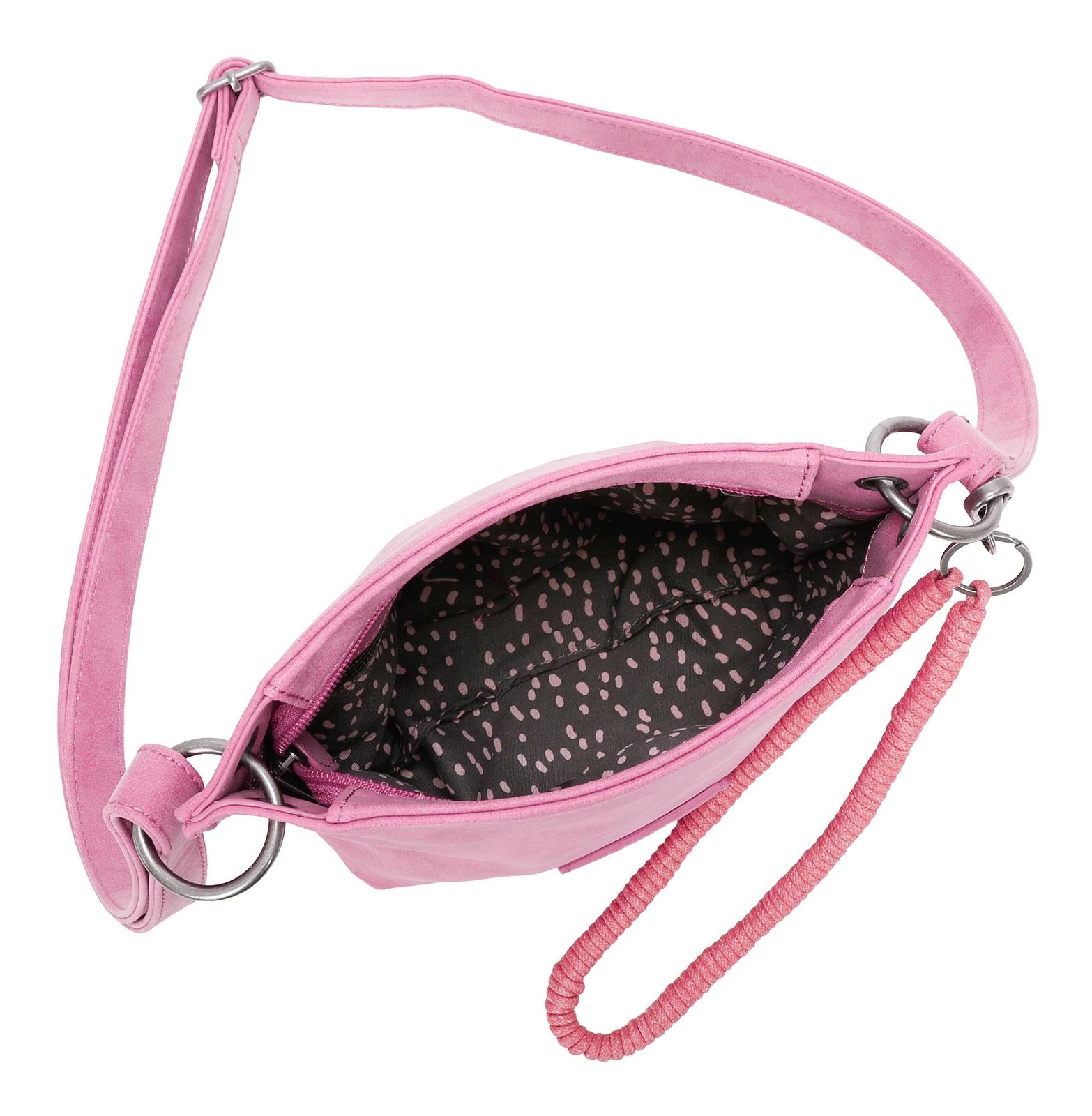 - Umhängetasche wird mit Zipper geschlossen