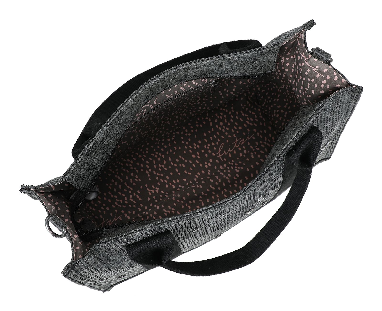 - Handtasche wird mit Zipper geschlossen