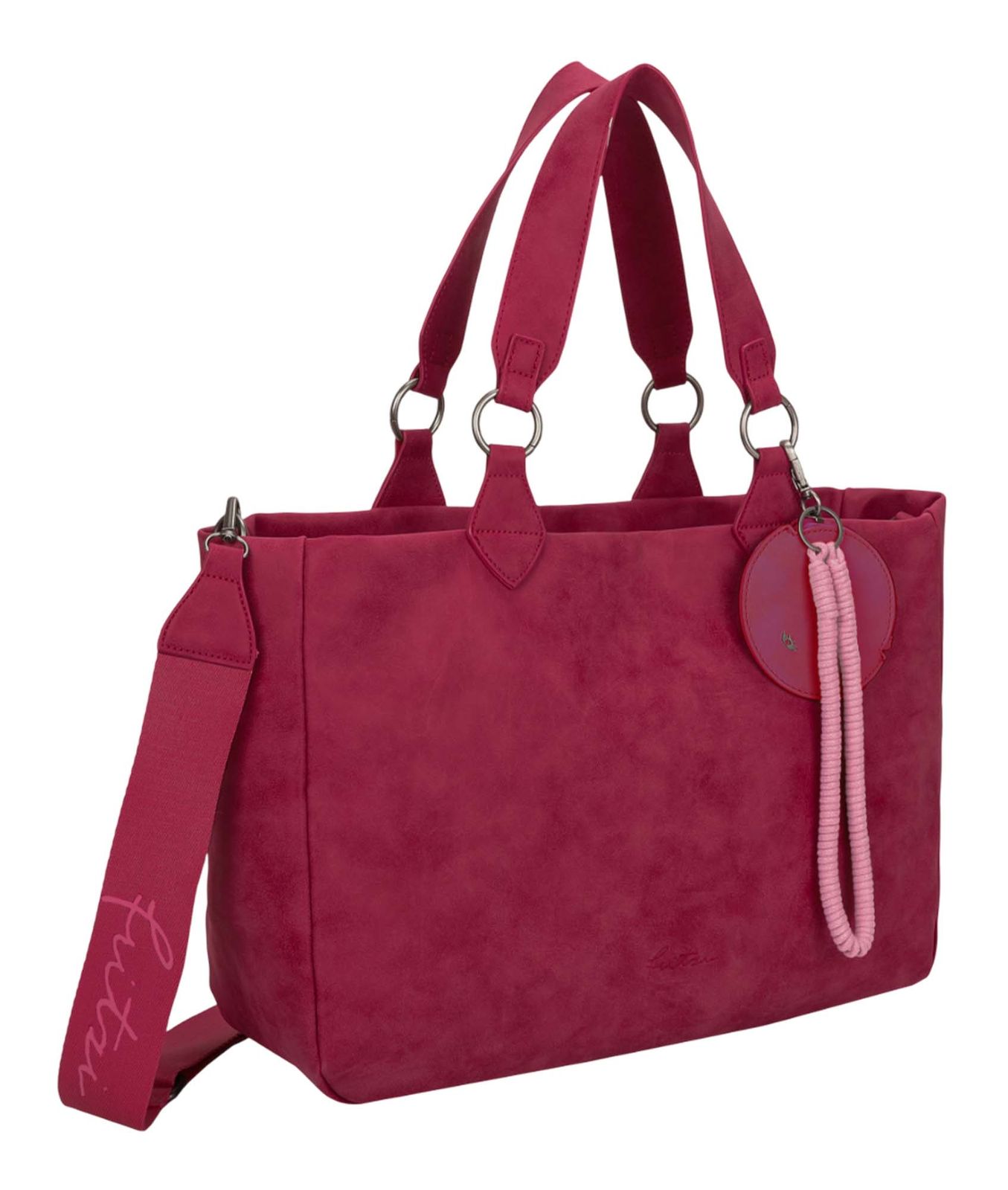 - Schultertasche mit Etikett und Schulterriemen, Schlüsselring, Anhänger