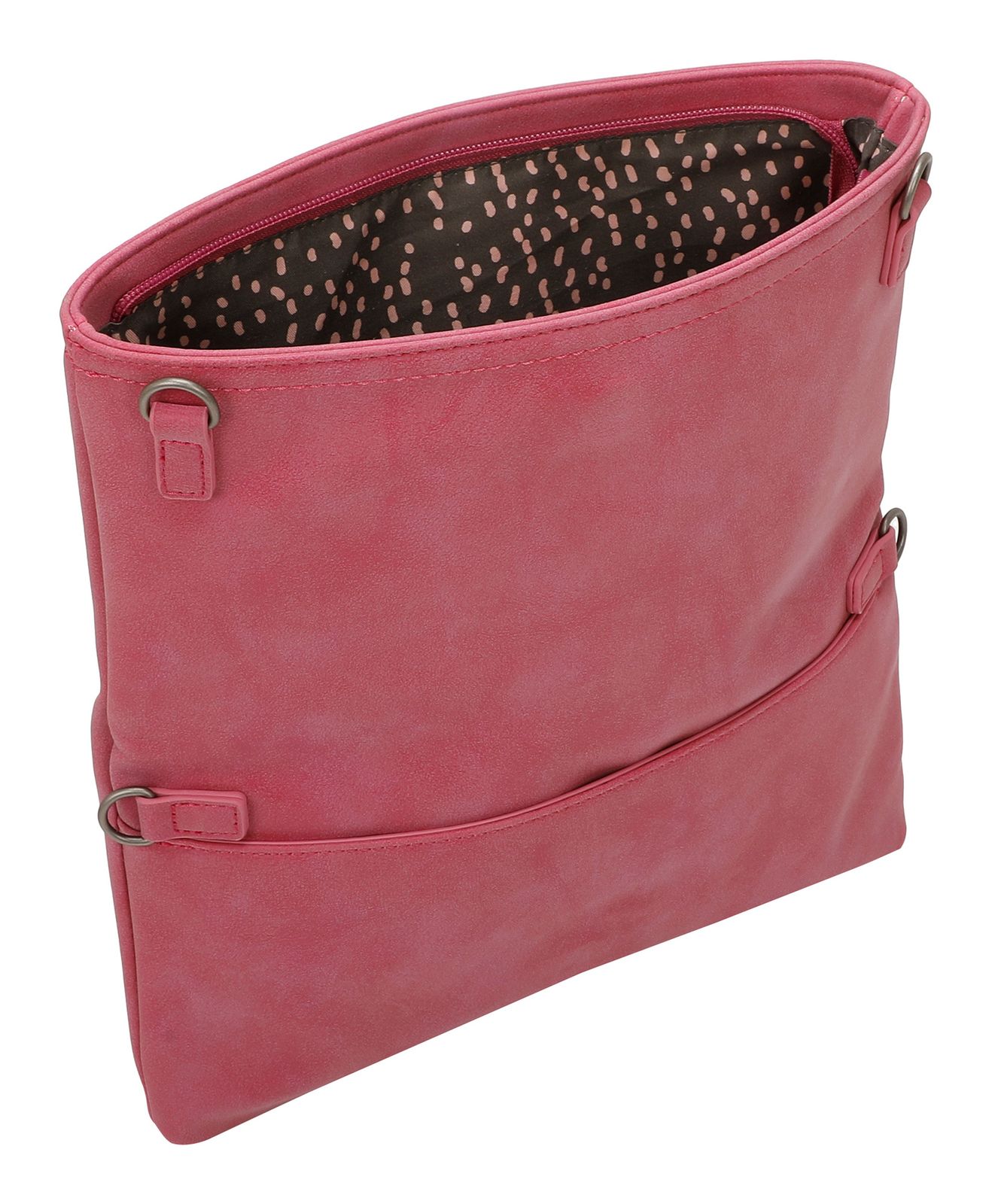 - Umhängetasche wird mit Zipper geschlossen