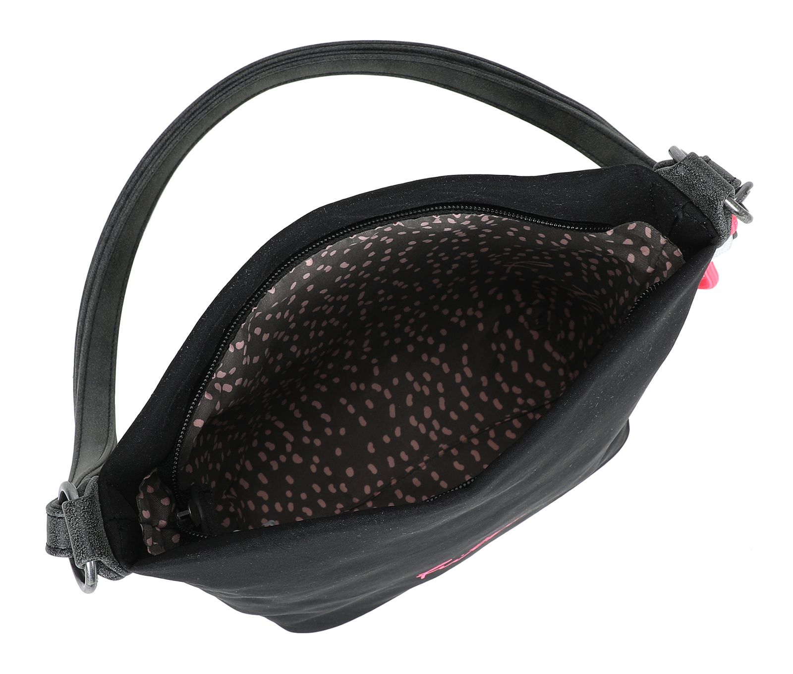 - Umhängetasche wird mit Zipper geschlossen