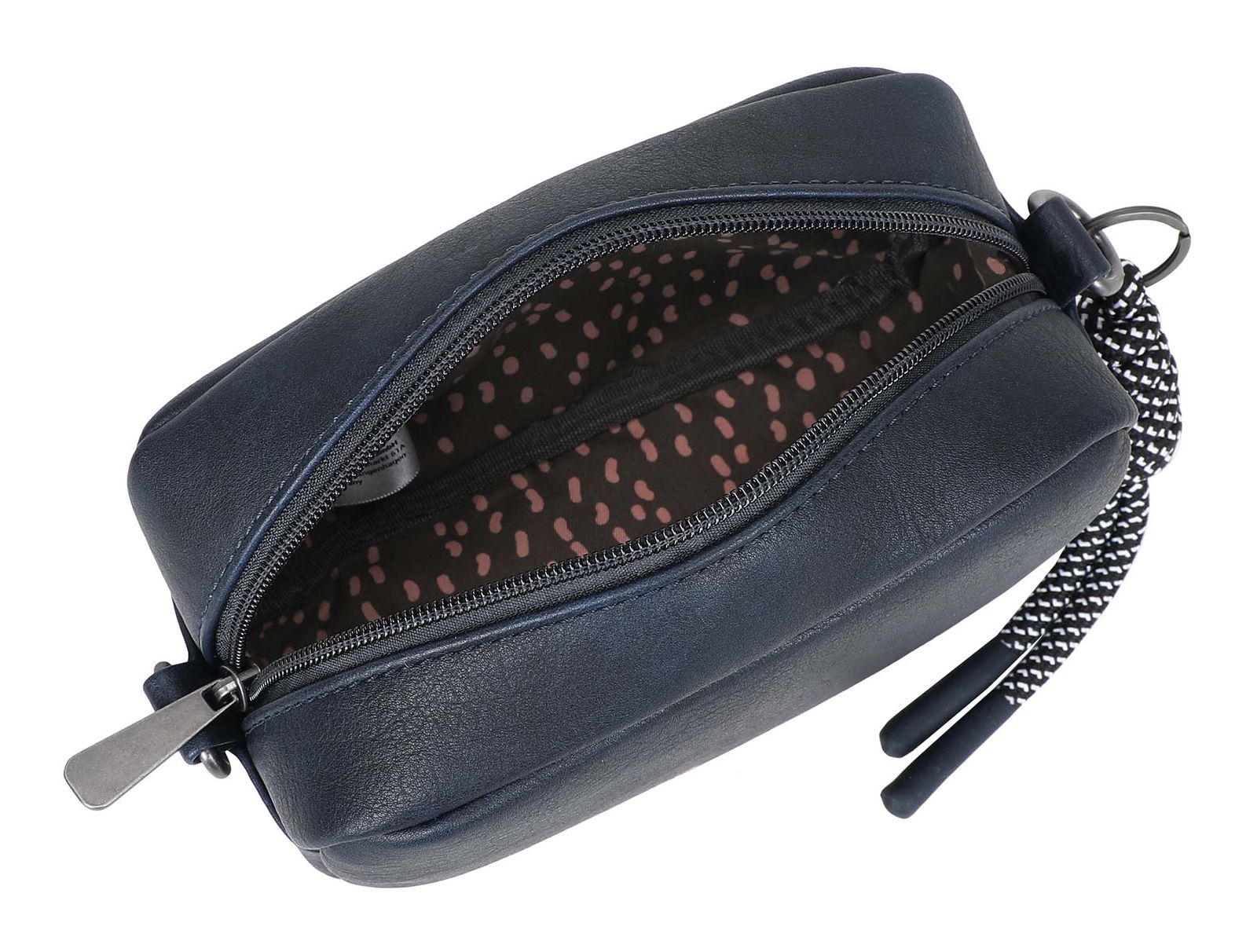- Umhängetasche wird mit Zipper geschlossen