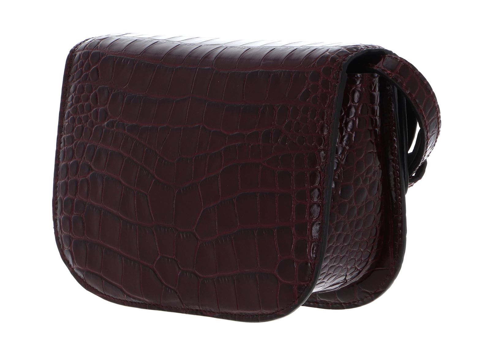 - Umhängetasche wird mit Überschlagklappe und Steckverschluss geschlossen