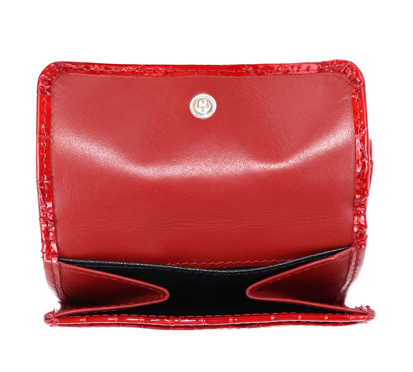 - Geldbörse wird mit Überschlagklappe, Druckknopf und Zipper geschlossen