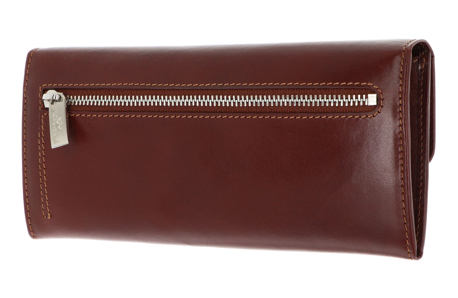 - Geldbörse wird mit Überschlagklappe und Druckknopf geschlossen