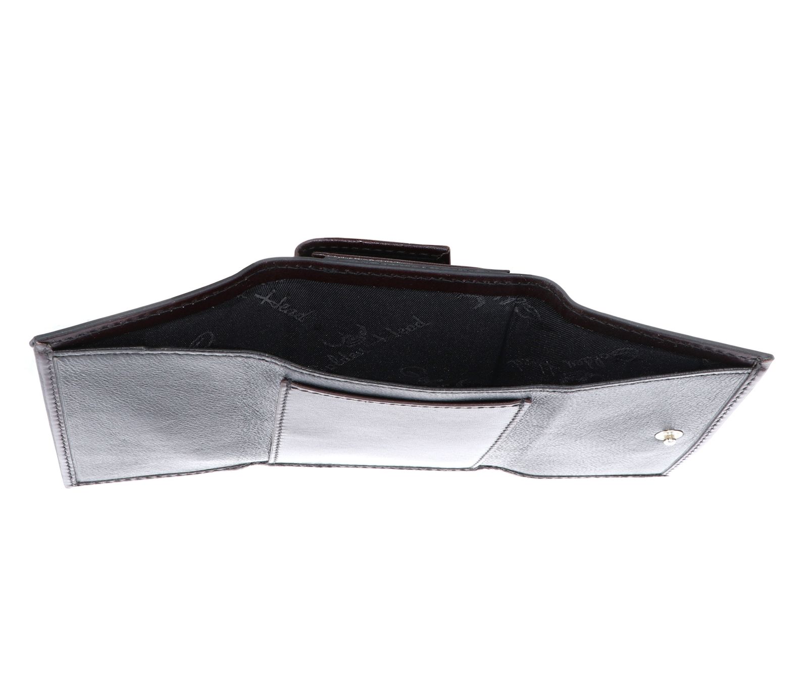 - Auf der Vorderseite 1 Fach mit Überschlagklappe und Druckknopf für Münzgeld / Kleingeld