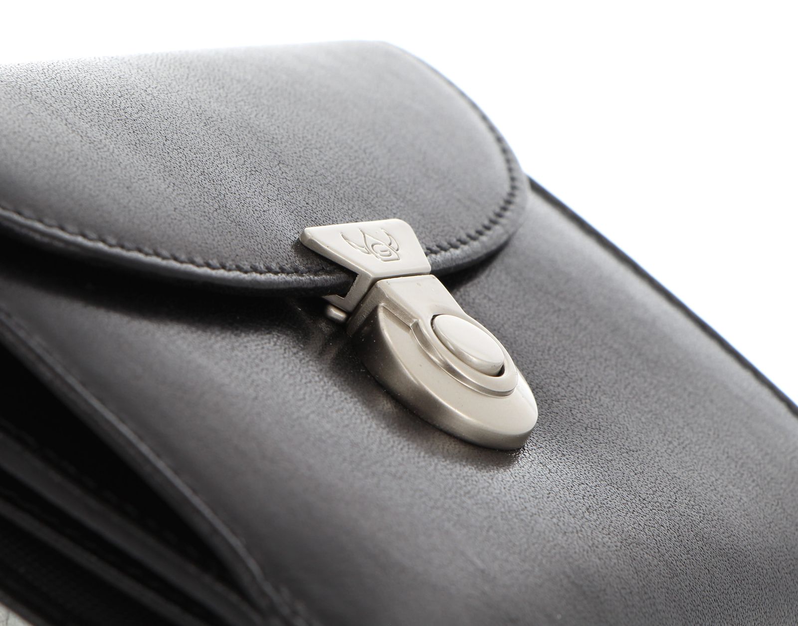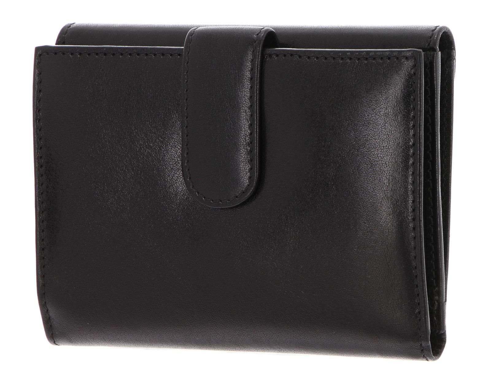 - Geldbörse wird mit Überschlagklappe, Lasche und Schnappverschluss geschlossen
