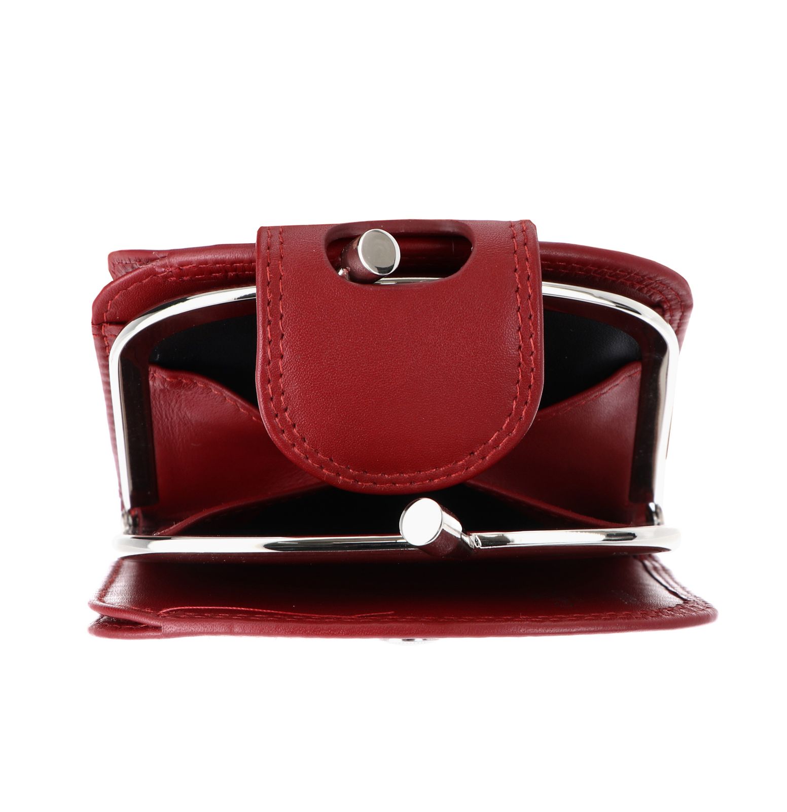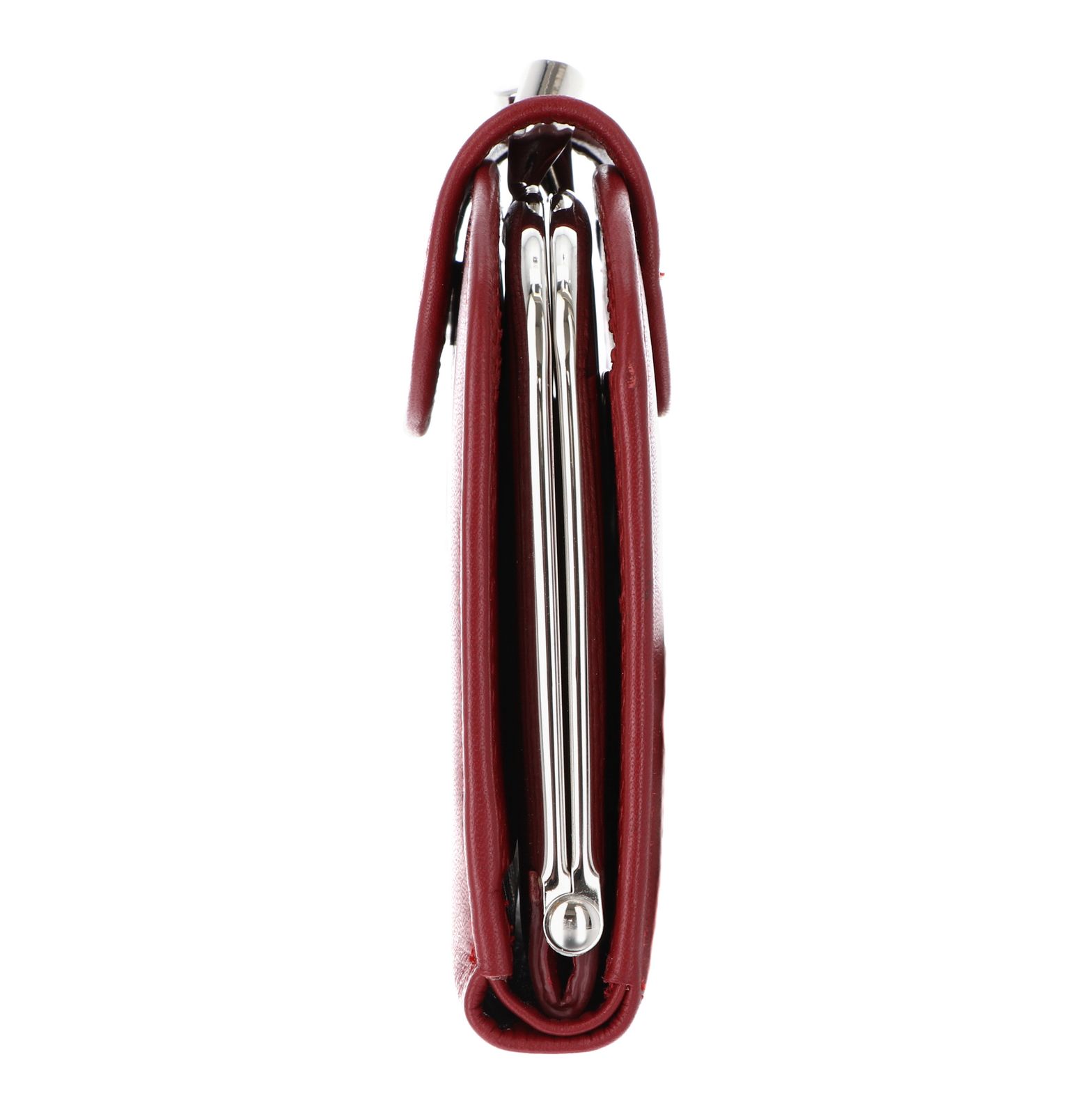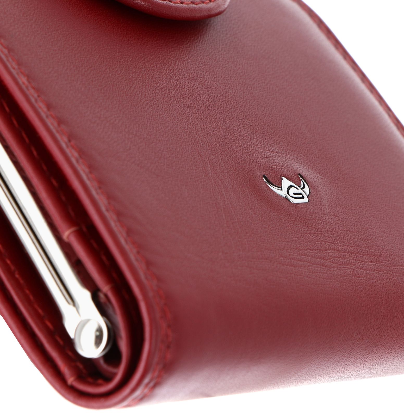 • Geldbörse wird mit Überschlagklappe, Druckknopf und Bügelverschluss geschlossen