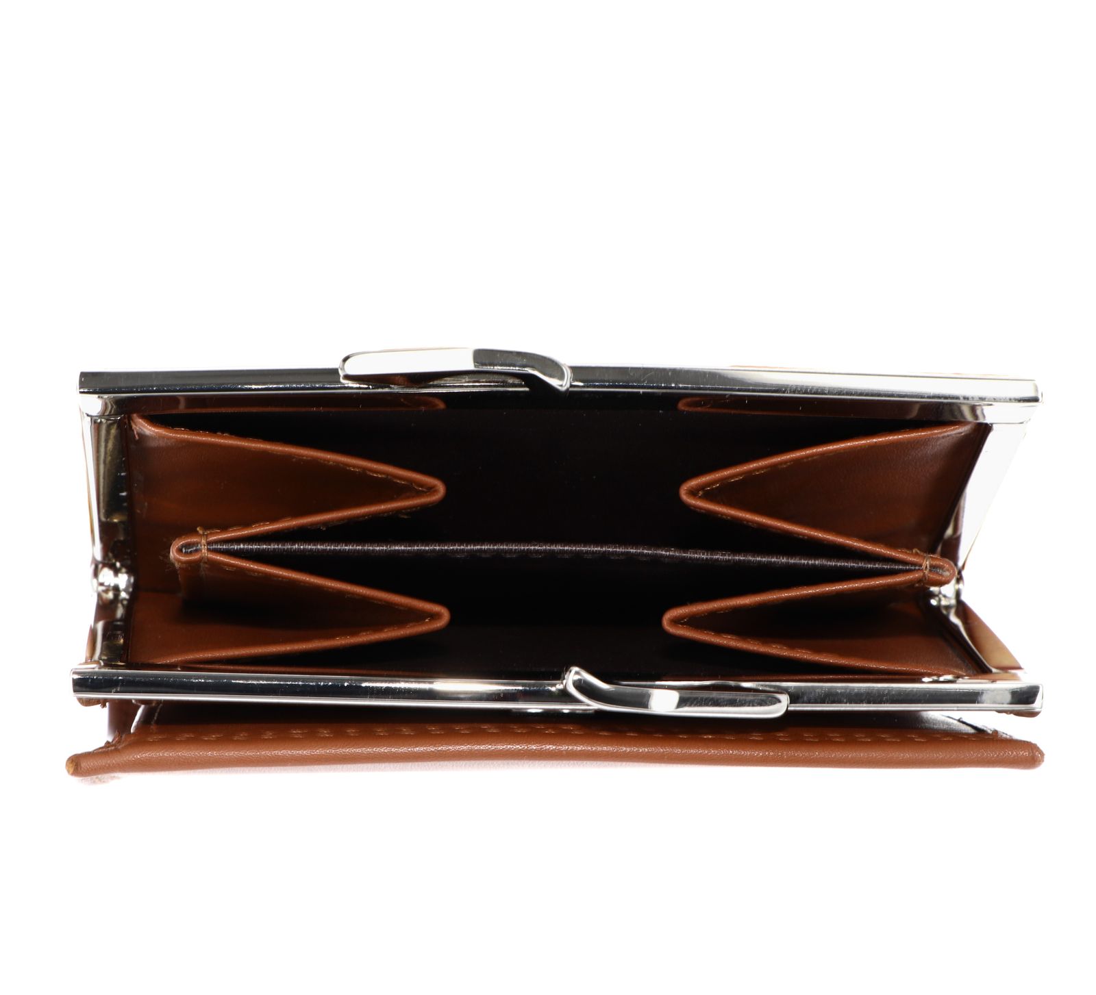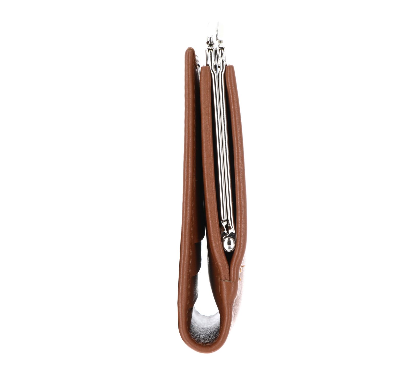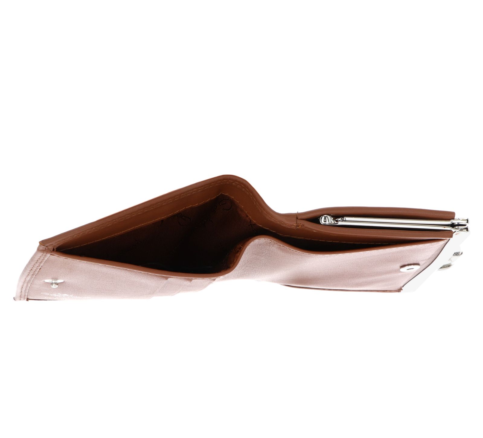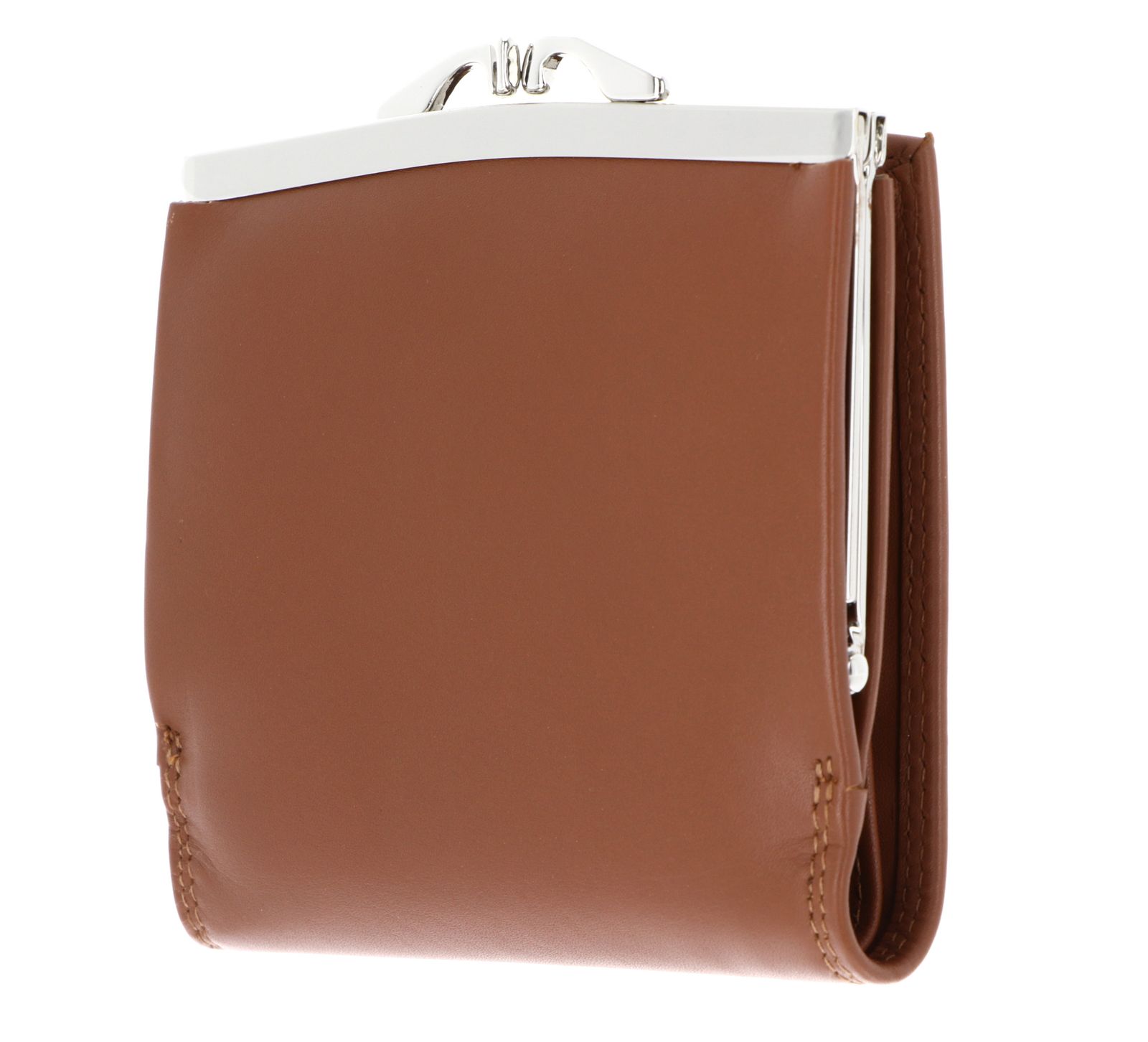 - Geldbörse wird mit Druckknopf und Bügelverschluss geschlossen