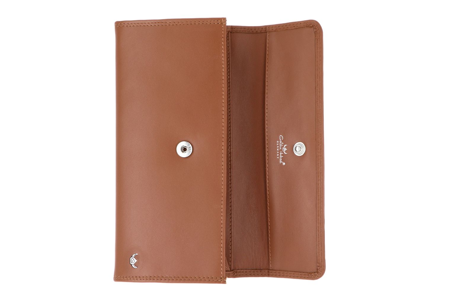 - Geldbörse wird mit Überschlagklappe und Druckknopf geschlossen